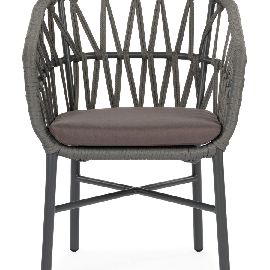 Каркас выполнен из алюминия, что делает стул легким, прочным и устойчивым к внешним воздействиям. Цвет каркаса — антрацитовый или черный, что подчеркивает современный стиль и универсальность модели.