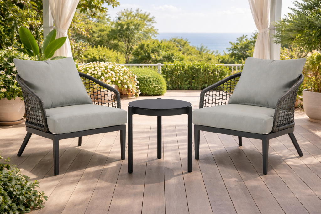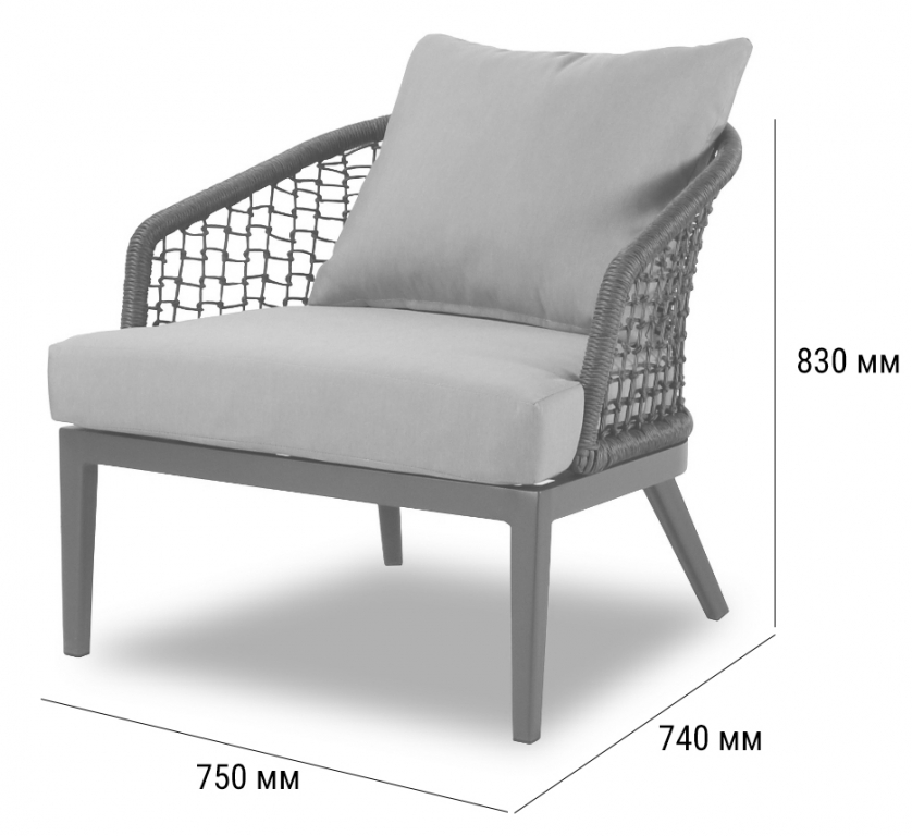 Современный лаунж комплект плетеной мебели Lounge с алюминиевым каркасом станет стильным акцентом в вашем интерьере или на открытой террасе. Мягкие подушки на кресле выполнены из износостойкой ткани обеспечивают максимальный комфорт при отдыхе. Столешница кофейного столика из стекла с керамическим покрытием устойчива к влаге, царапинам и перепадам температур. Современный дизайн делает комплект универсальным элементом для интерьера и уличных пространств. Идеально подойдет для отдыха на террасе, балконе, в саду или гостиной. Отлично сочетается с кофейным столиком из той же коллекции. Состав комплекта: Кресло с подушками, размер: 750х740х830 мм, высота сиденья: 420 мм - 2 шт. Столик кофейный стеклянный, размер:Ø600х450 мм - 1 шт. Особенности: Каркас выполнен из алюминия -легкого и долговечного материала. Плетение выполнено из прочного роупа (верёвочного шнура). Столешница выполнен из стекла с керамическим покрытием. Мягкие подушки с тканевыми чехлами. Современный кофейный столик с лаконичным дизайном станет стильным акцентом в вашем интерьере или на открытой террасе. Прочная конструкция из алюминиевого каркаса обеспечивает устойчивость и долговечность, а столешница из стекла с керамическим покрытием устойчива к влаге, царапинам и перепадам температур. Столик идеально подойдет для использования на террасе, в зоне отдыха, у бассейна или как журнальный столик в гостиной. Его минималистичный дизайн отлично сочетается с современными креслами и диванами.