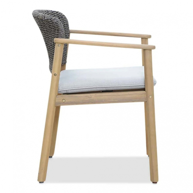 Freeport -это воплощение современного стиля и элегантности для вашего сада. Коллекция, созданная из натуральной акации в сочетании с изысканным веревочным плетением и серыми подушками, привносит уют и роскошь в любое открытое пространство. Удобное кресло с подушкой -идеальный компаньон для обеда на свежем воздухе. Прочный деревянный каркас обеспечивает надежность и долговечность, а модный дизайн подчеркивает вкус и статус владельца. Freeport -это комфорт, стиль и природная эстетика на вашей веранде. Особенности: Материал - АКАЦИЯ, отделка Rose Grey. Веревочное плетение роуп PE420 толщиной 6 мм на спинке излучает стиль в сочетании с деревянными поверхностями. Древесина, из которой изготовлена мебель, имеет сертификацию FSC (Forest Stewardship Council) - гарантия качества и происхождения древесины. Знак FSC - показатель того, что продукция происходит из леса, в котором ведется экологически и социально ответственное лесное хозяйство. Благодаря своей долговечности, прочности и устойчивости к вредителям эта древесина была создана для изготовления садовой мебели. Страна происхождения древесины: Вьетнам, Малайзия. Средняя плотность древесины: 550 кг/м3. Подушкав комплекте, плотность ткани 260 г/м2.Материалы устойчивы к УФ-излучению и другим погодным воздействиям. Цвет подушки - серый CD 527. Инструкция по уходу. Для уточнения всех возможных вариантов материала и цвета данного изделия обращайтесь к нашим менеджерам.