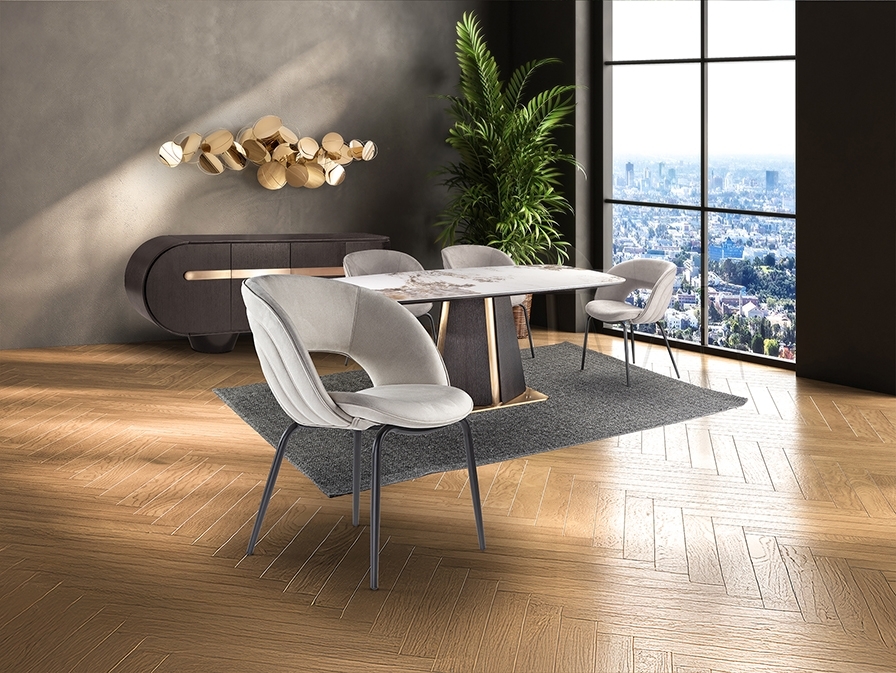 Стул из металла и изогнутой фанеры. Металлические ножки с черной отделкой и обивкой под замшу в цвете камня.