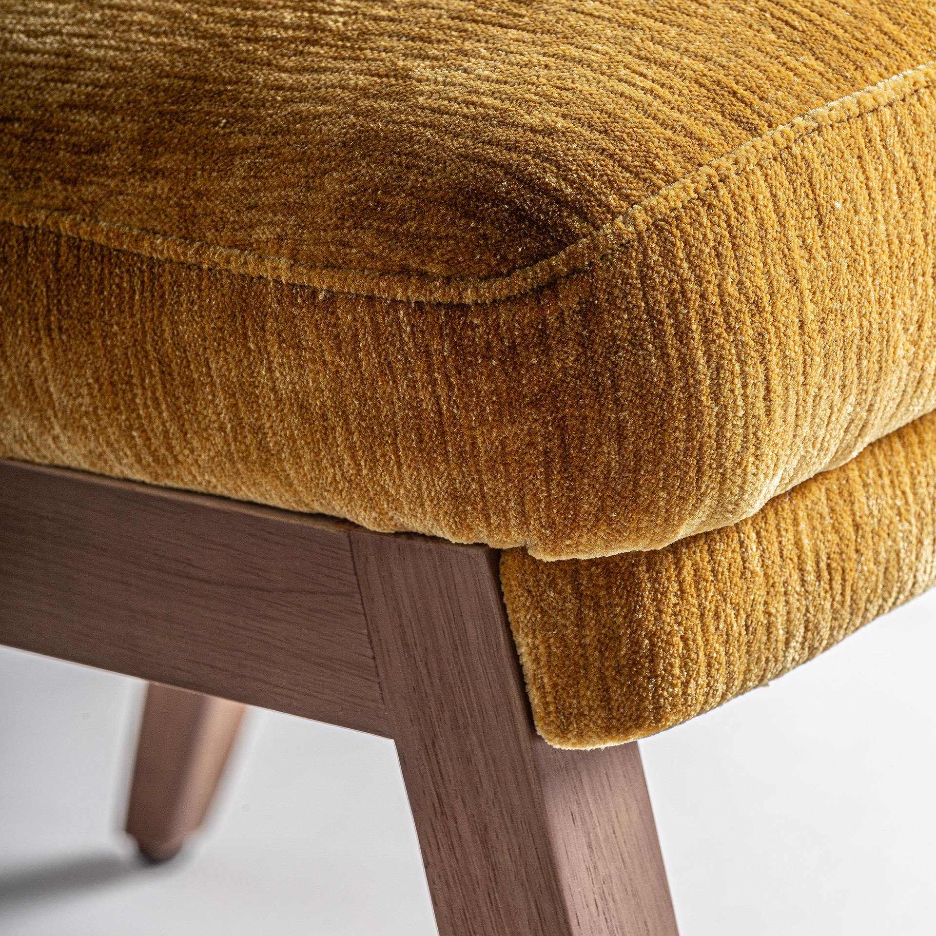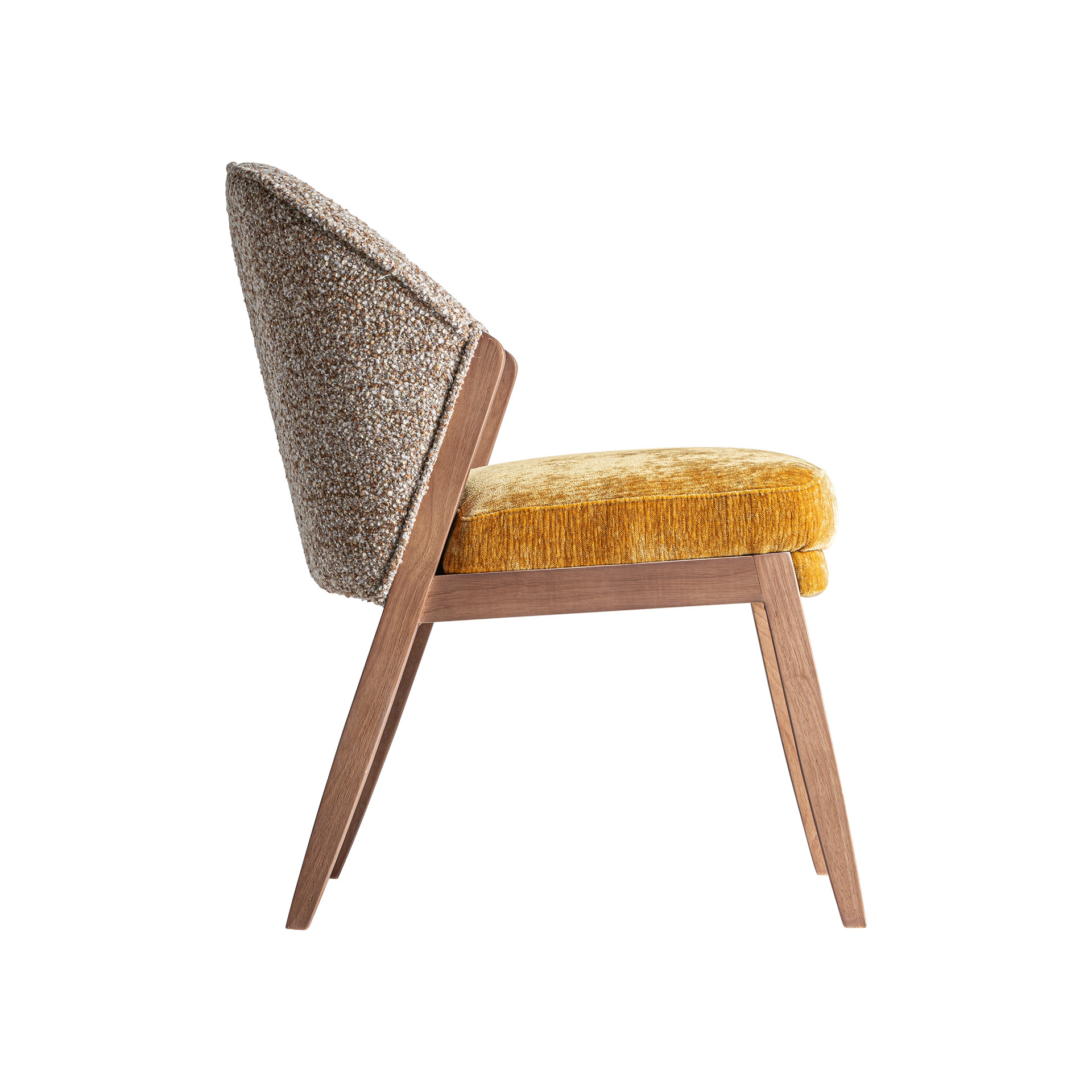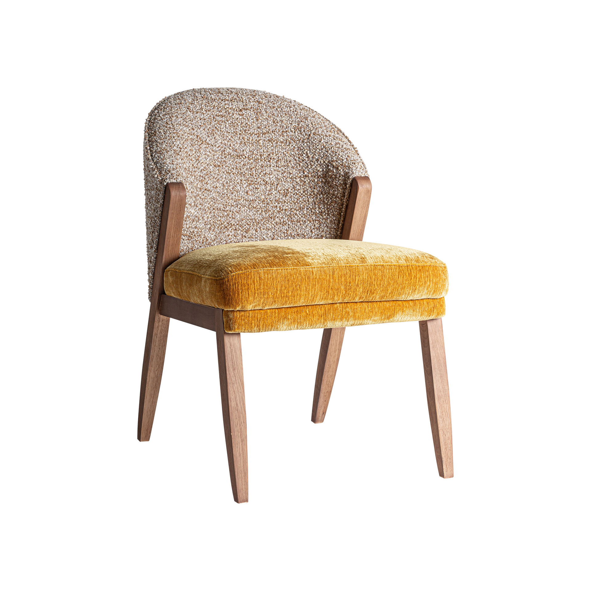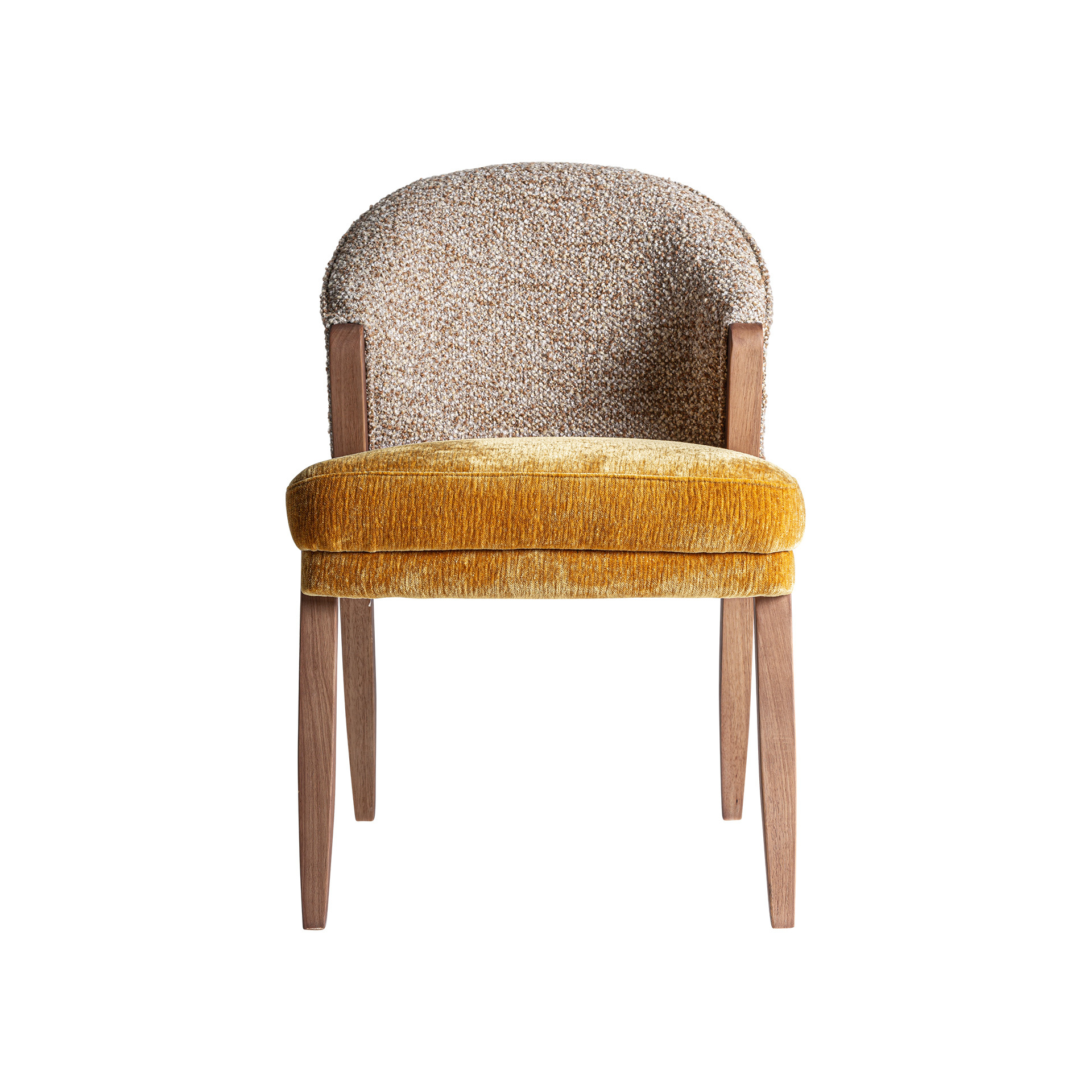 Стул изготовлен из полиэстера горчичного цвета в сочетании с коричневой пеной и каучуковым деревом. Ширина: 56см, Глубина: 70см, Высота: 85см