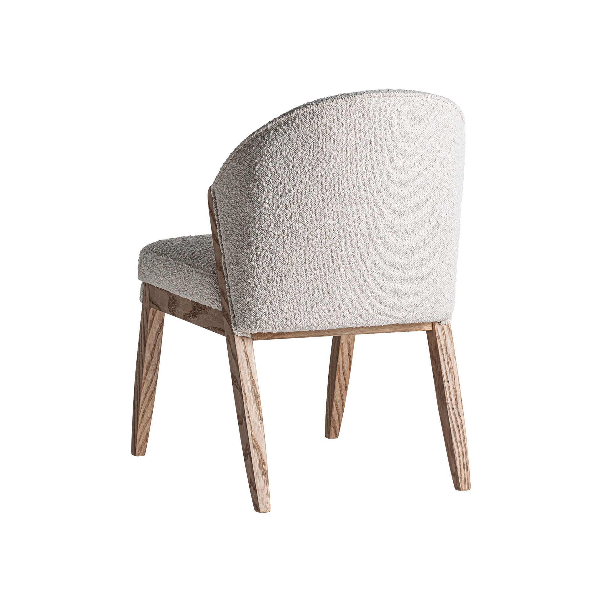 Стул из коричневой сосны в сочетании с белым хлопком букле. Ширина: 55см, Глубина: 67см, Высота: 85см