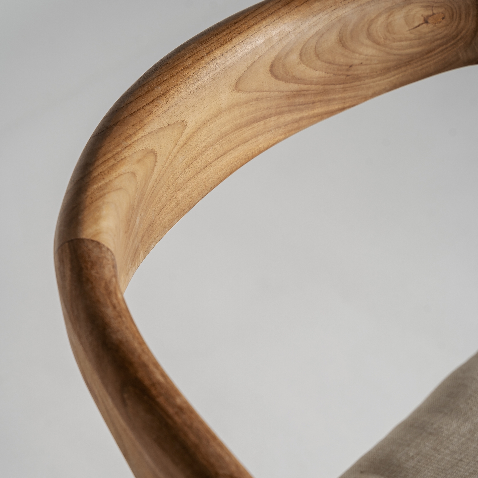 Стул Malbun в колониальном стиле, изготовленный из коричневого тикового дерева в сочетании с полиэстером.