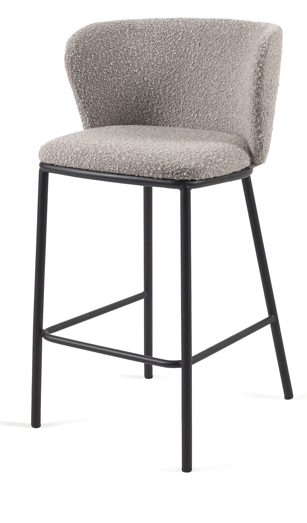 Полубарный стул Ciselia из серой ткани букле и черного металла 65 см