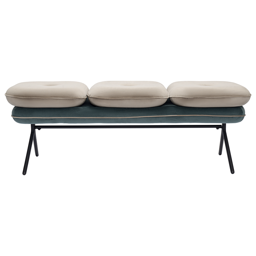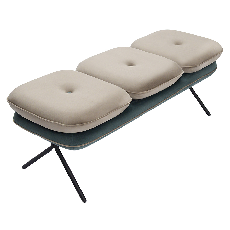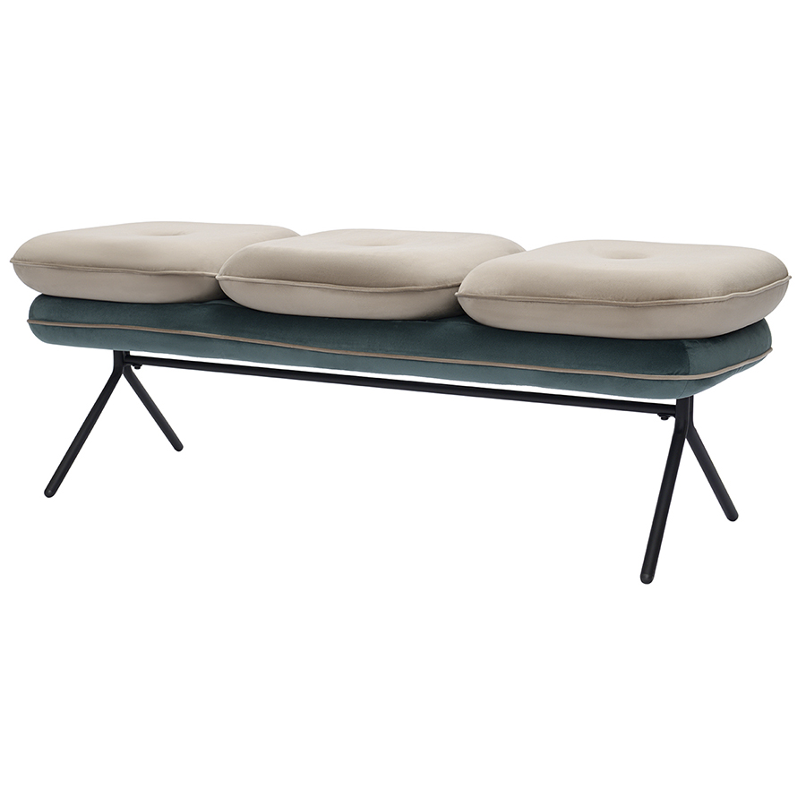 Банкетка pea, велюр, бежевая/сине-зеленая