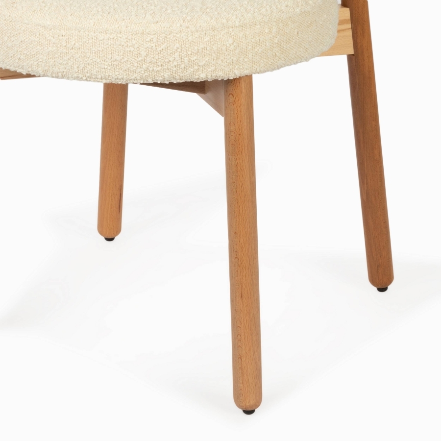 Обеденный стул Chloe сочетает натуральные материалы и непревзойденный комфорт. Каркас из светлого бука придает изделию прочность и долговечность, а мягкое сиденье из ткани букле обеспечивает приятное прикосновение и комфорт даже при длительном использовании. Стул Chloe станет элегантным акцентом вашей кухни или столовой, создавая уют и гармонию в интерьере.