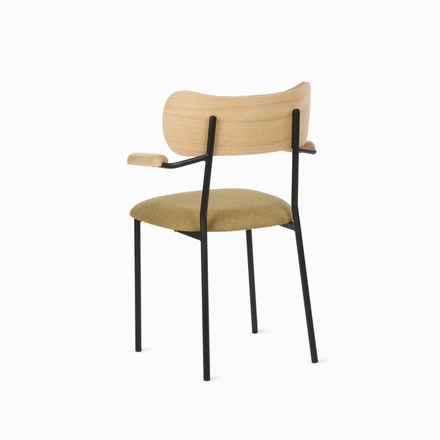Спинка стула выполнена из массива дуба, подлокотники – из ясеня, каркас – из стали с черным матовым покрытием. Это сочетание материалов придает стулу особую элегантность и надежность.