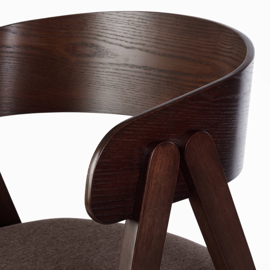 Каркас и ножки из малайзийского дуба обеспечивают прочность и долговечность конструкции, а спинка из шпона ясеня подчеркивает естественную красоту дерева. Универсальный коричневый оттенок обивки гармонично вписывается в любые интерьеры, от классических до современных, придавая пространству уют и стиль.