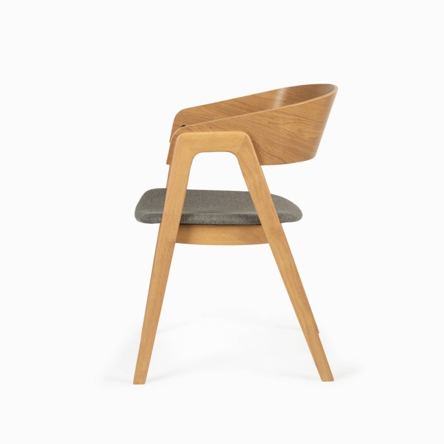 Деревянный каркас придаёт стулу ощущение надёжности и тепла, а нейтральная светло-серая ткань делает образ спокойным, благородным и универсальным. Prerogative легко становится частью обеденной зоны, гостиной или стильного коммерческого интерьера, не перегружая пространство и подчёркивая вкус владельца.