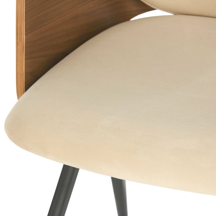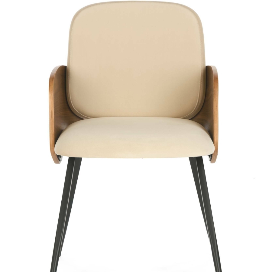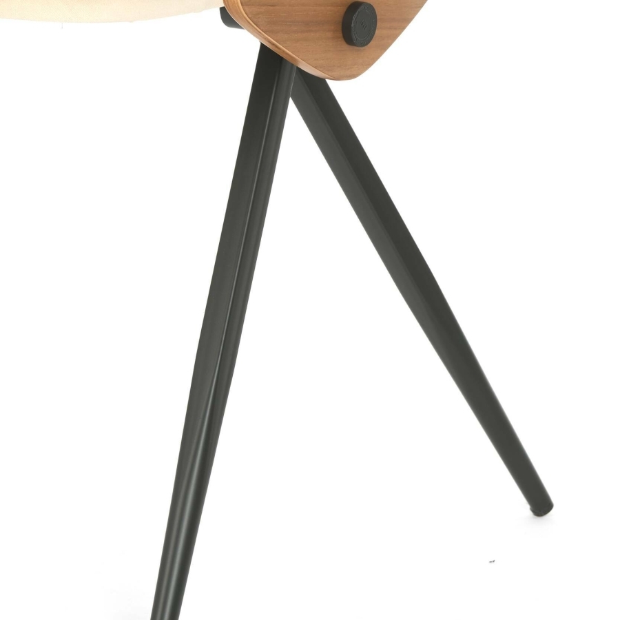 Прочный металлический каркас обеспечивает надежность и устойчивость конструкции, а деревянные элементыдобавляют тепла и натуральности образу. Мягкое сиденье и спинка, обитые качественной бежевой тканью, приятны на ощупь и создают ощущение уюта даже при длительном использовании. Контраст черных и светлых оттенков придаёт стулу изысканный, современный характер.