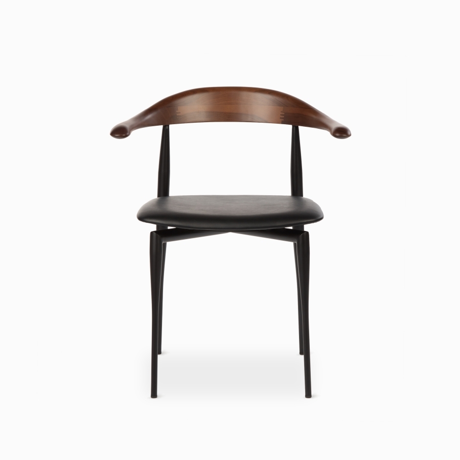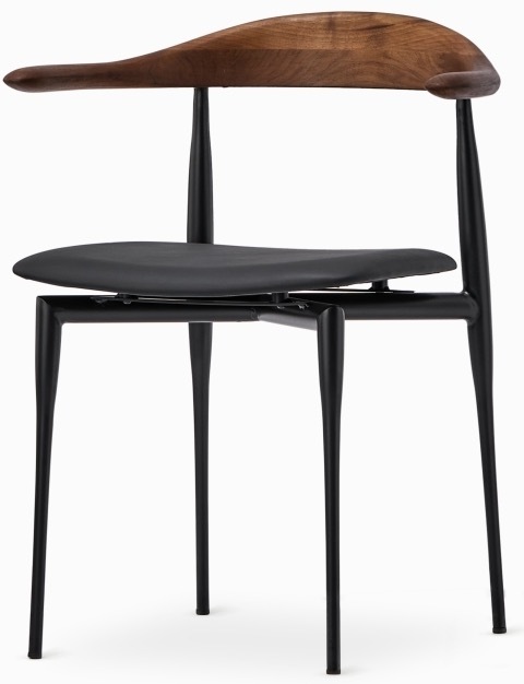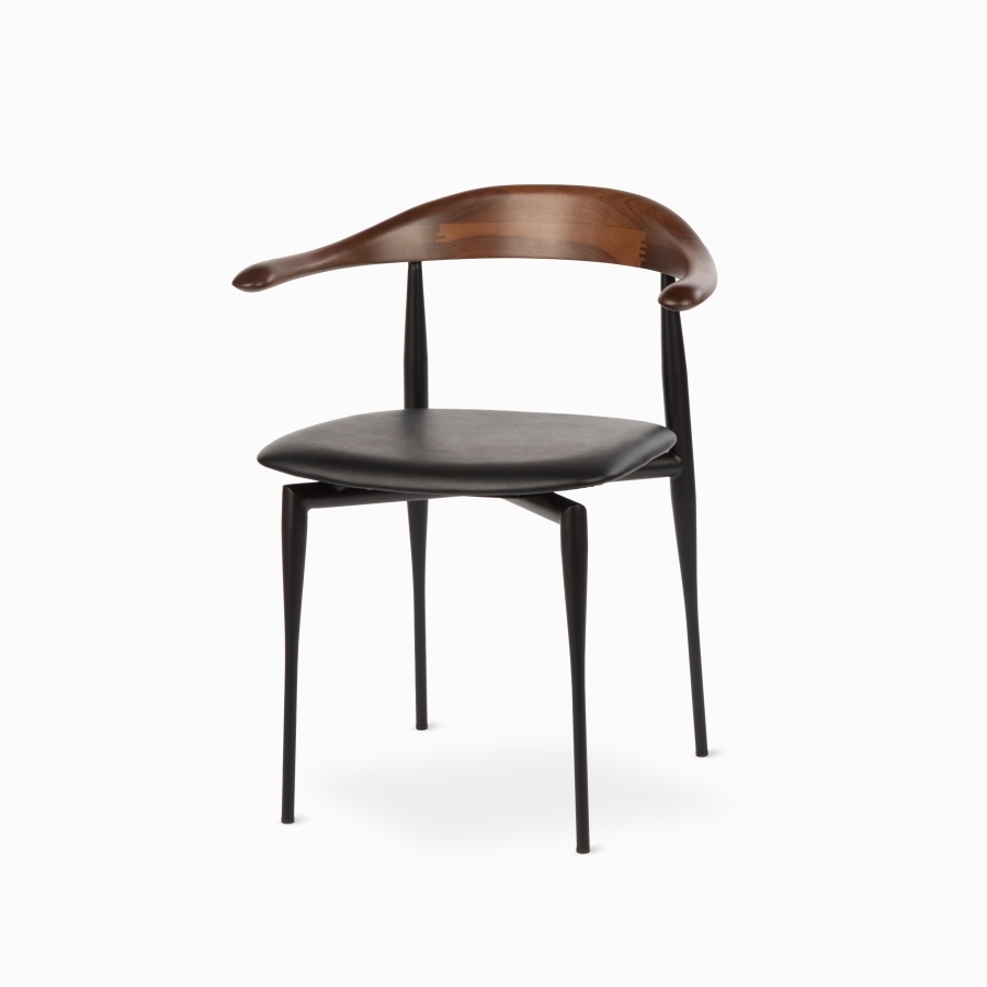 Обеденный стул Olten — сталь / черная экокожа / дерево