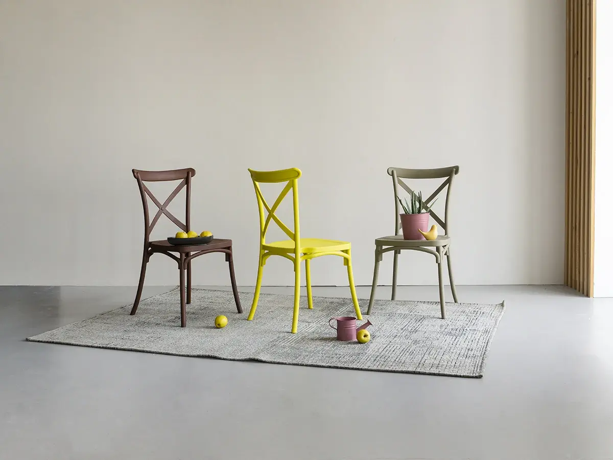Bertram — классика, которая не выйдет из моды. В основе дизайна — традиционная форма венского стула. Характерные черты: тонкие, но устойчивые ножки, обтекаемая форма, спинка с крестообразными элементами на винтах, гнутые детали, сиденье из ротанга. Массив вяза обладает роскошной текстурой, прочностью и долговечностью. Bertram напоминает антикварный предмет мебели, эффект старения придаёт ему шарм и благородство.