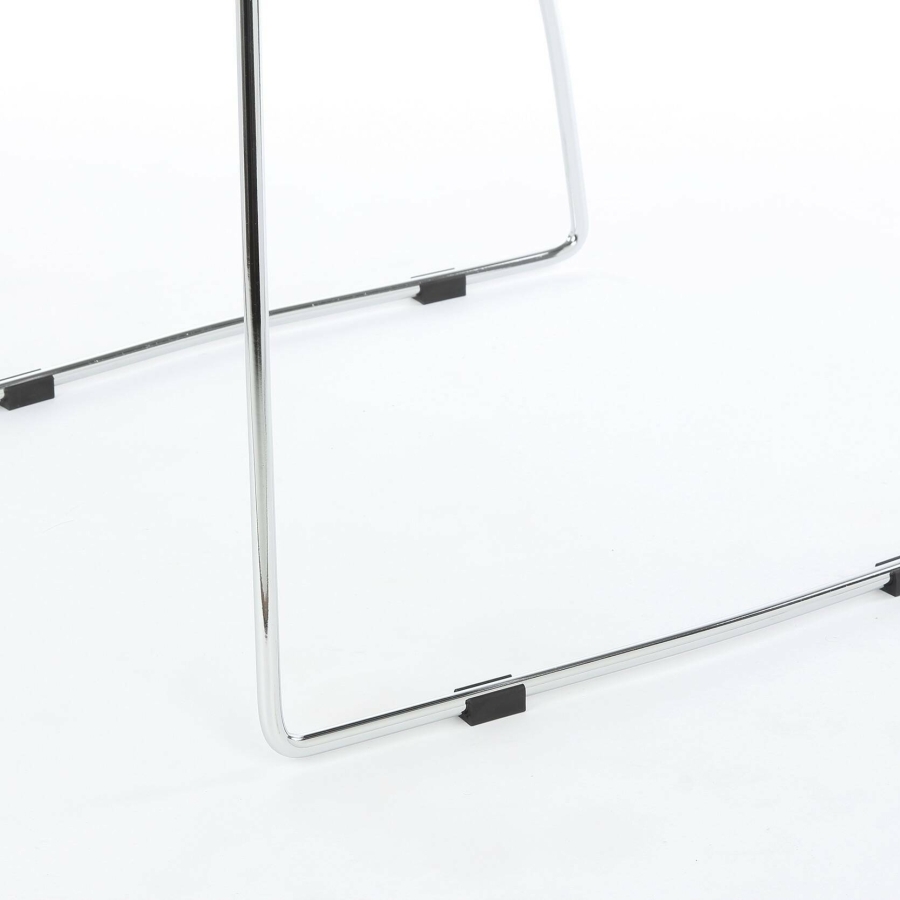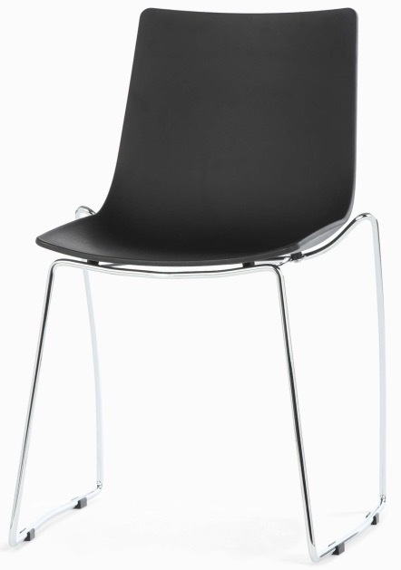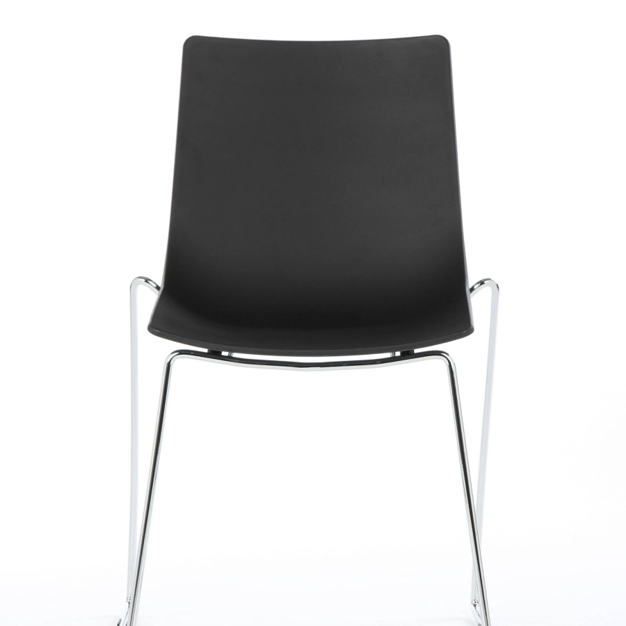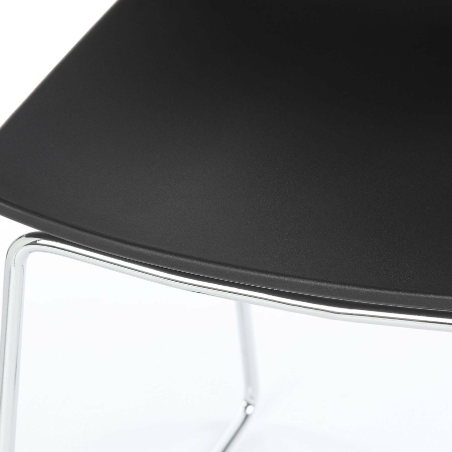 Металлический каркас на полозьях обеспечивает долговечность и устойчивость, а пластиковое сиденье легко очищается, оставаясь практичным даже при интенсивном ежедневном использовании. Чёрный цвет придает интерьеру сдержанность и современный характер.