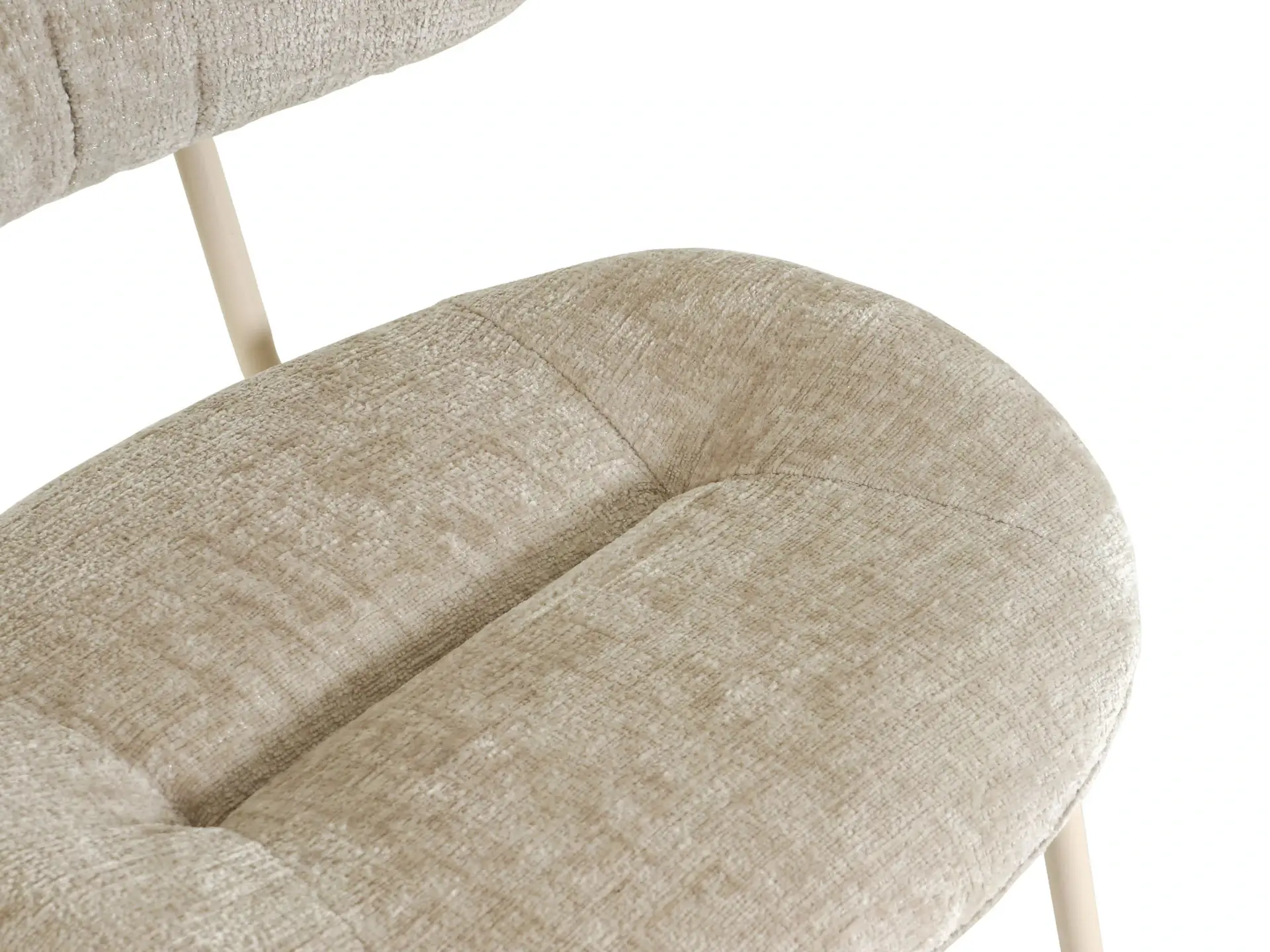 Конструкция даёт поддержку корпусу и комфортную посадку. Мягкая обивка выполнена из износостойкого шенилла. Ворсистая ткань приятна на ощупь, выглядит благородно, поддержит ощущение уюта, тепла. Универсальная модель гармонично впишется как в пространство с минималистичным настроением, так и в локацию с ярким характером. Подходит для небольших помещений, где важно экономить площадь. Стул Gigi доступен в терракотовом и бежевом цвете на ваш выбор.