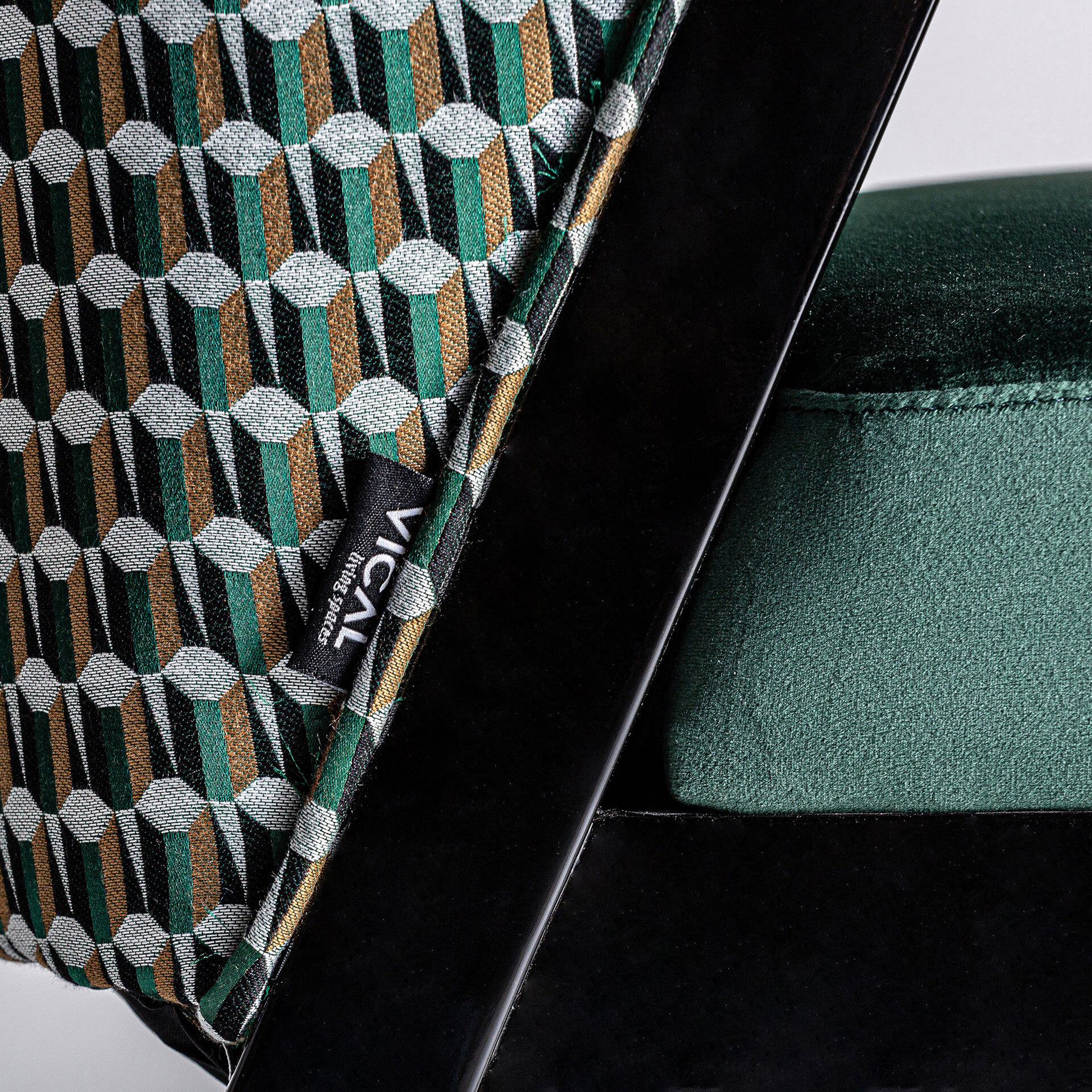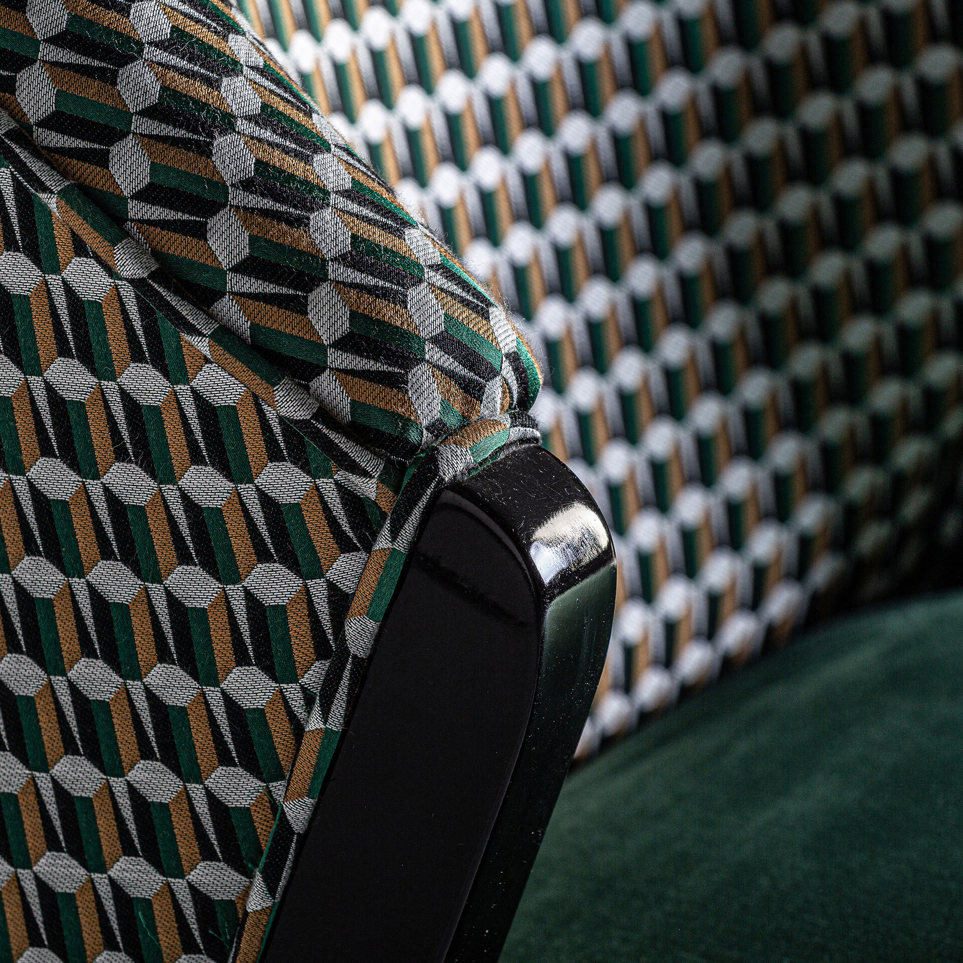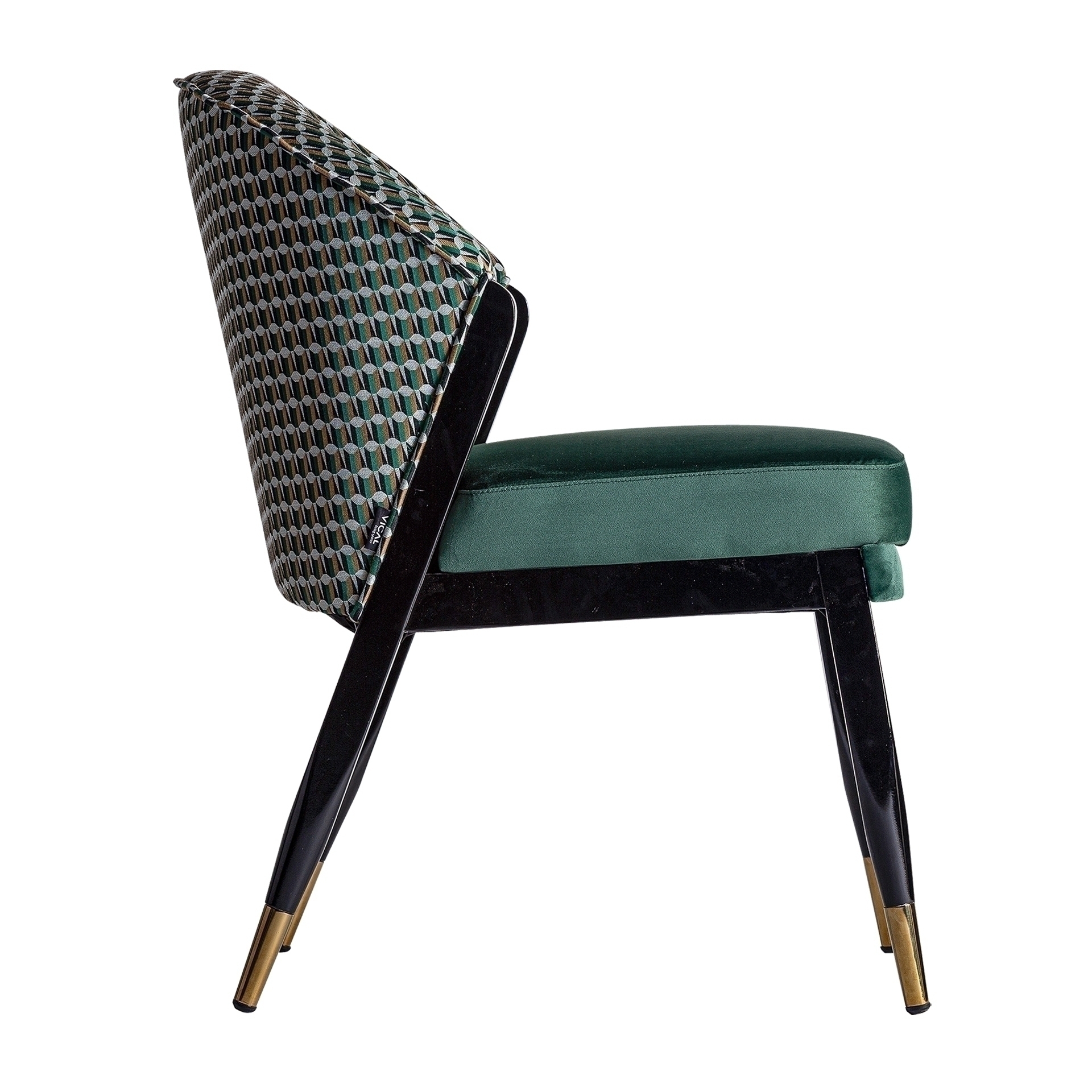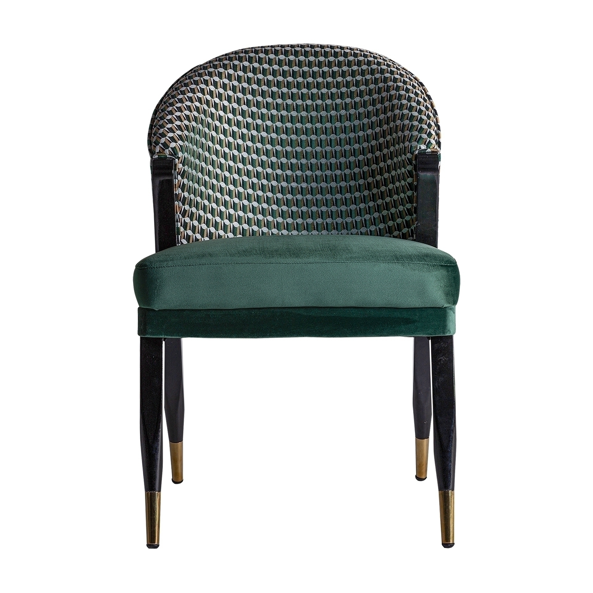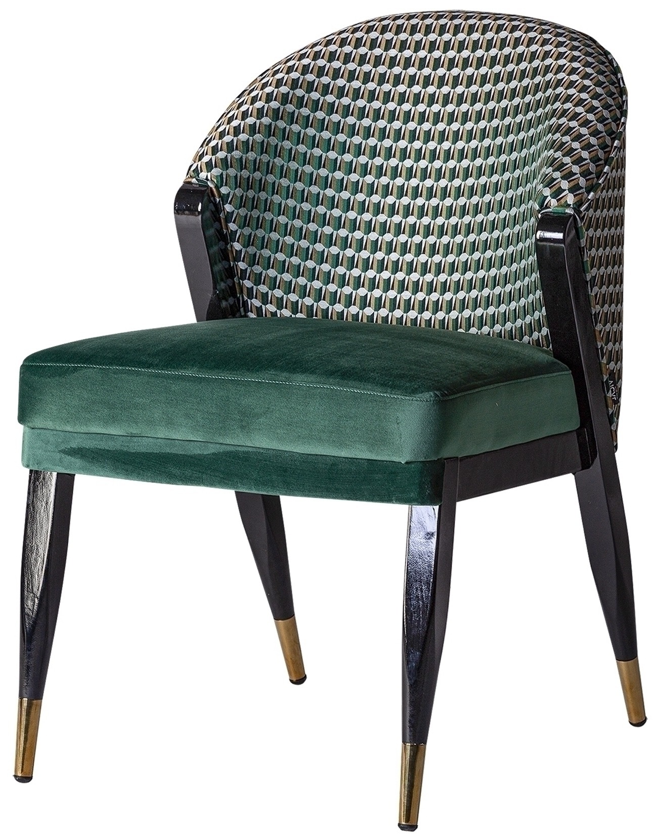 Стул Kelheim, цвет зеленый/черный, стиль арт-деко. Изготовлен из каучукового дерева в сочетании с поролоном и бархатом.