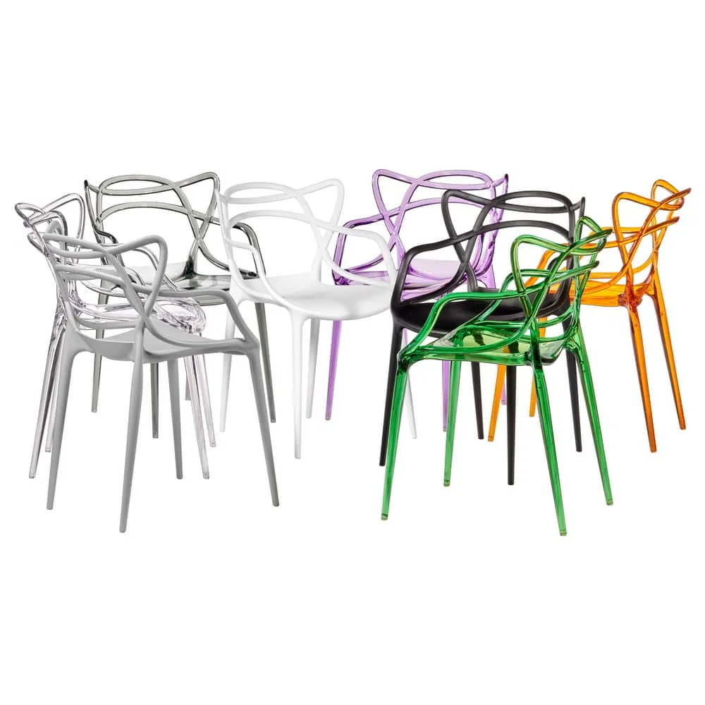 Стул Masters прозрачный серый - одно из самых удивительных и привлекательных решений дизайна пластиковых стульев. Уникальное сочетание тонких линий элементов спинки, подлокотников и ножек, предоставляет возможность универсального решения для жилых помещений, современных офисных пространств, баров, кафе, ресторанов и отелей. Варианты матовых отделок и металлизированного эффекта пластика расширяют возможность реализаций со стульями Masters в разных по стилю и дизайну помещениях