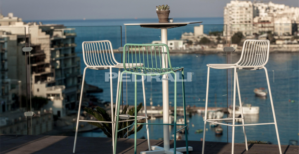 Дизайн: Cmp Design. Коллекция Nolita – это мебель, разработанная специально для использования на открытом воздухе, придающая элегантность и свежесть этим пространствам. Она напоминает первые садовые стулья, с производства которых в 1963 году Mario Pedrali начал свое мебельное дело. Штабелируемый полубарный стул со стальным каркасом и подножкой, окрашенными для использования на открытом пространстве. Особенности: Каркас выполнен из оцинкованной трубчатой стали Ø16 мм. Посмотреть каталог отделок. Спинка и сиденье выполнены изоцинкованных стальных стержней Ø6 мм. Накладки на ножках выполнены из технополимера черного или белого цвета. Подножка выполнена из оцинкованной трубчатой стали Ø10 мм. Возможность штабелирования по 10 штук, благодаря чему можно экономить место при хранении и транспортировке. Дополнительно можно приобрести подушку. Сертификат CATAS. Открыть технические характеристики. Для уточнения всех возможных вариантов материала и цвета данного изделия обращайтесь к нашим менеджерам.