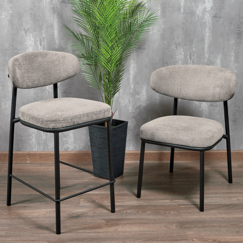 Стул полубарный Lucas 2 латте шенилл с чёрными ножками