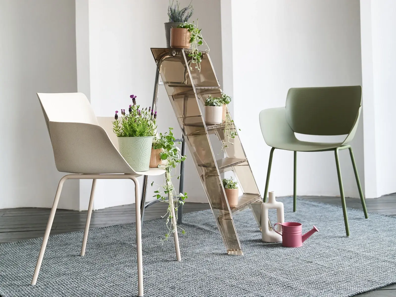 Материал сиденья - пластик, материал каркаса и ножек - сталь с порошковым покрытием. Наличие подпятников, предохраняющих от царапания пола.
