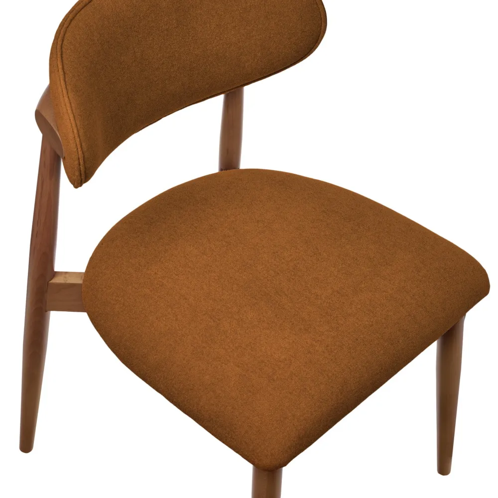 Стул Lucas 3 имеет каркас из массива натурального бука в благородном ореховом цвете. Сиденье и спинка обиты высококачественной тканью букле коллекции Like терракотового цвета. Ткань имеет трикотажную подложку, что обеспечивает ей сохранение формы и износостойкость.