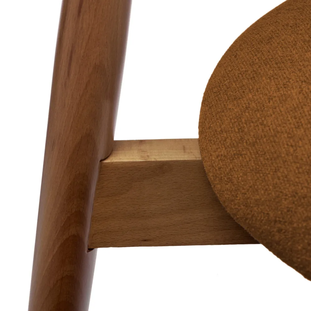 Оригинальный каркас стула изготовлен из массива натурального дерева бук в благородном ореховом цвете. Прочные и надёжные ножки стула гарантируют устойчивость и долговечность. Выпирающие части каркаса минимальны, что делает стул удобным для использования в ограниченном пространстве. Мелкая структура дерева образует удивительно гладкую поверхность, придающую стулу особый шарм.