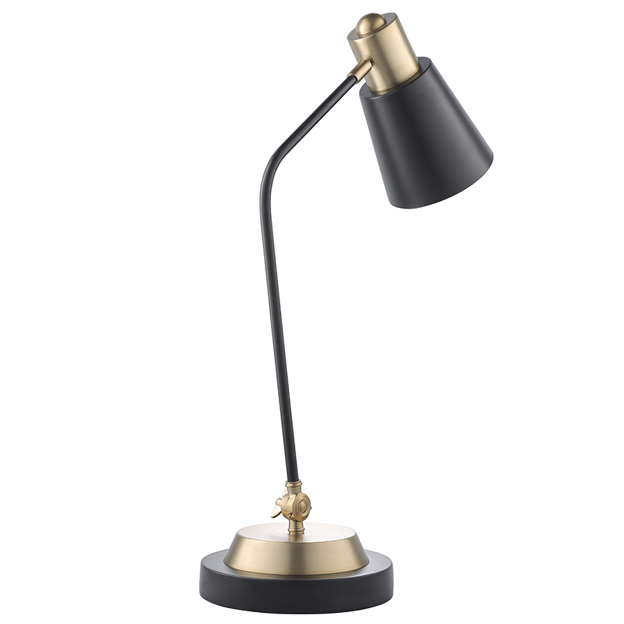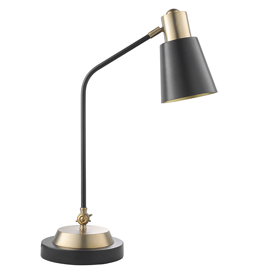Лампа настольная Pilwy поможет качественно подсветить рабочую поверхность или необходимую зону в помещении. Ее универсальный дизайн подходит как для современных, так и классических интерьерных решений. Особенности и преимущества: - Сочетание железа и латуни обеспечивает светильнику привлекательный вид, практичность и долгий срок службы. - Возможность регулировки наклона корпуса и подвижный плафон позволяют создавать качественное и комфортное освещение. - Для светильника с цоколем Е27 подходит большинство ламп, включая энергосберегающие. Материал: железо, латунь. Размеры: 21х21х65 см. Высота плафона: 23 см. Диаметр нижней части: 13,2 см. Диаметр верхней части: 6,5 см. Высота ножки: 53 см. Диаметр основания: 21 см. Цвет: золотистый/черный. Тип цоколя: Е27. Максимальная мощность ламп: 5 Вт. Степень пылевлагозащиты: IP20. Переключатель: встроенный. Длина провода: 2,5 м. Лампы в комплекте: нет. Для удаления пыли и загрязнений используйте сухую мягкую ткань. Запрещается применение абразивных материалов и агрессивной бытовой химии. Перед очищением убедитесь, что светильник не подключен к сети. Осветительный прибор со степенью пылевлагозащиты IP20 можно устанавливать только в сухих помещениях, где отсутствует вероятность попадания на корпус брызг воды и исключается любое механическое воздействие.