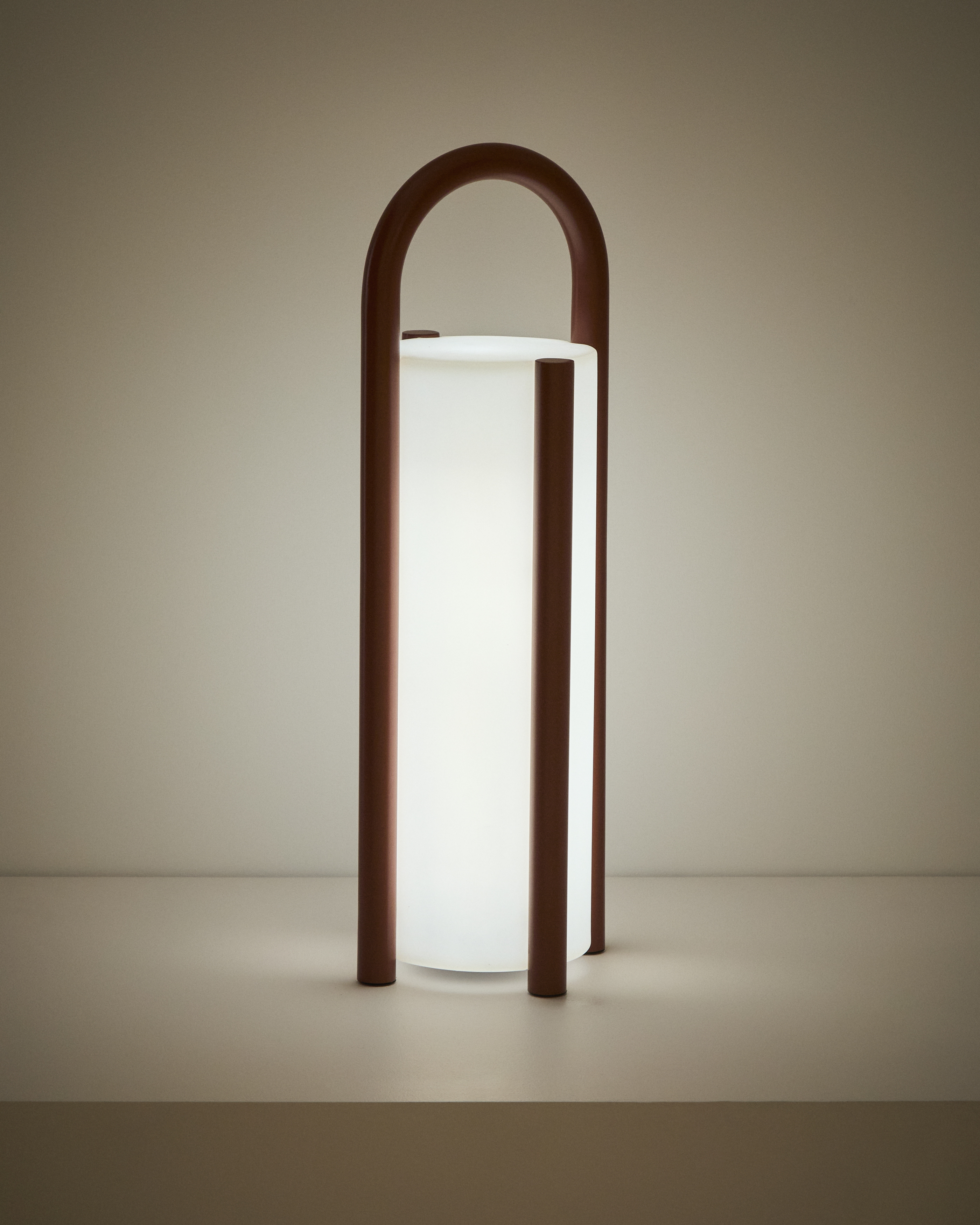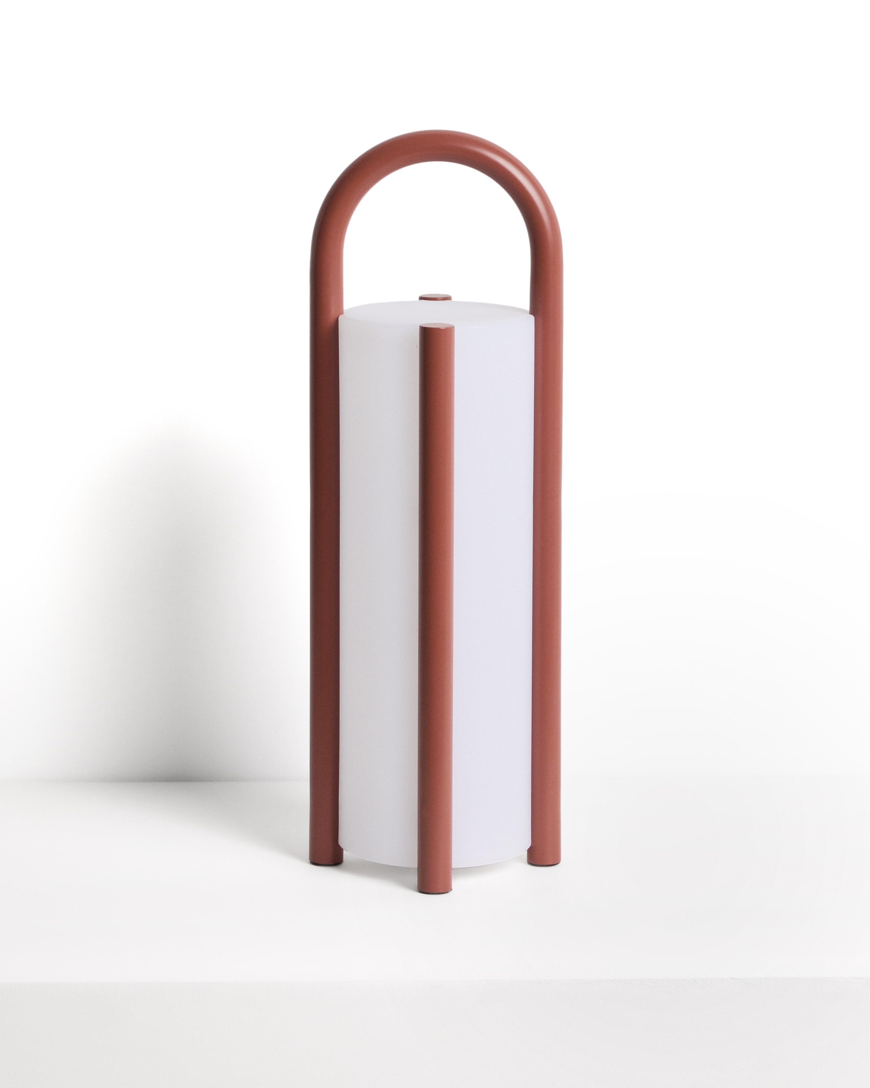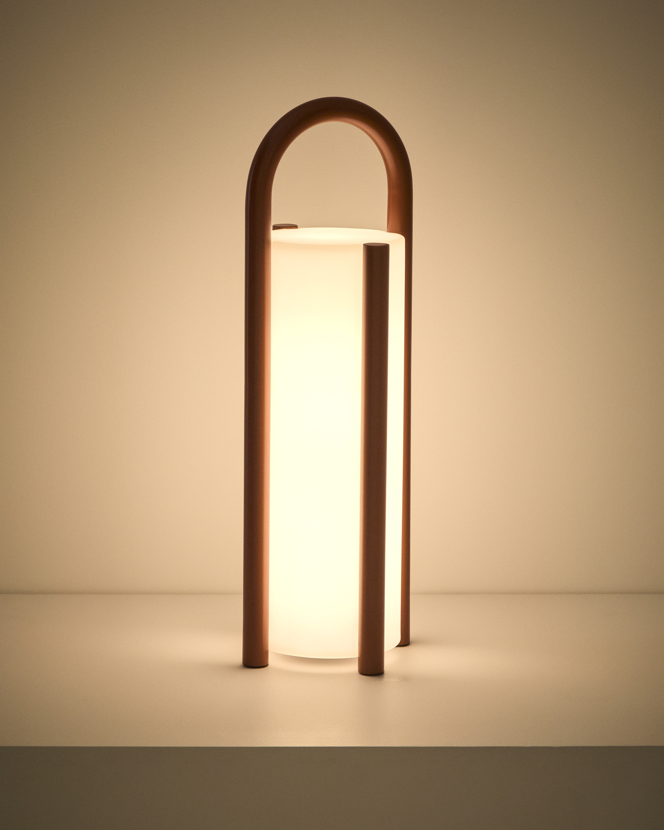 Большая портативная настольная лампа Leros из полиэтилена и стали терракотового цвета
