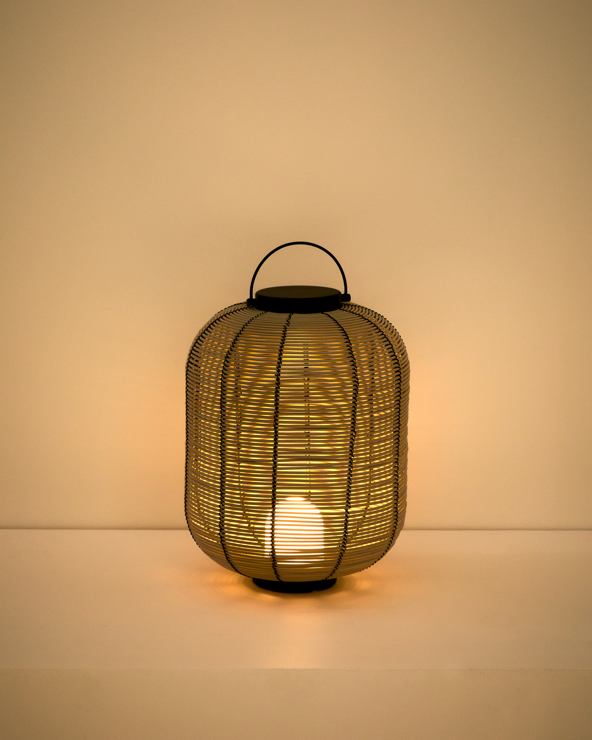 Переносная настольная лампа Saranella изготовлена из синтетического ротанга — прочного материала, воспроизводящего естественное плетение ротанга и обладающего повышенной устойчивостью к воздействию окружающей среды. Она обеспечивает обволакивающее освещение как в помещении, так и на террасах или в саду. Цвет и интенсивность света легко регулируются кнопкой на основании, что позволяет менять освещение одним движением. Конструкция с двумя ручками расширяет возможности использования: лампу можно повесить, легко переместить или установить на поверхности в качестве настольной лампы. Разработанная Карлосом Гихарро эксклюзивно для Kave Home, она сочетает в себе эстетику и функциональность в универсальном изделии. Она совместима с кронштейнами для ламп Nali, что позволяет интегрировать ее в различные пространства.
