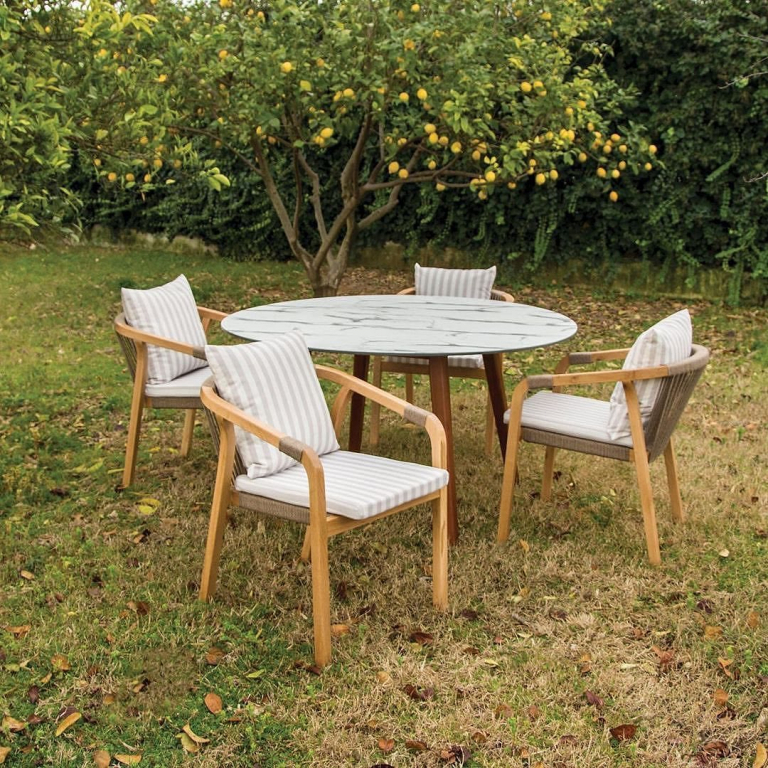 КреслоPablito - идеальный вариант для использования на летних площадках различных заведений, но также подходит для частных терраси открытых пространств.Каркас выполнен из дерева - ироко или дуба. Древесинаирокоотличается очень высокой прочностью, твердостью и сопротивлением нагрузкам, практически не подвержена воздействию различного рода вредителей, мебель из дуба имеет высокую износостойкость и может прослужить долгие годы без потери эстетического вида и эксплуатационных свойств. Плетение на спинке и подлокотниках выполнено из роупа натурального цвета. Подушки выполнены из тканиEtisilik®, которая обладает водоотталкивающими, маслоотталкивающимисвойствами и устойчивостью к любым пятнам и воздействиюУФ-излучения. В комплекте: подушки бежевого цвета. Цена на сайте указана за модель, выполненнуюиз ироко. Цены на другие модели Вы можете уточнить у менеджеров.