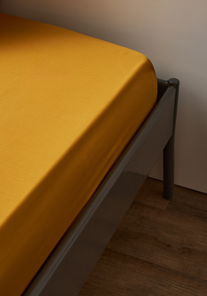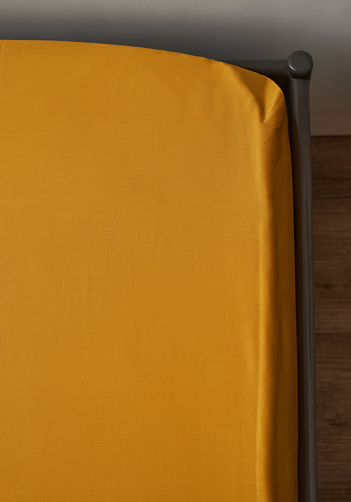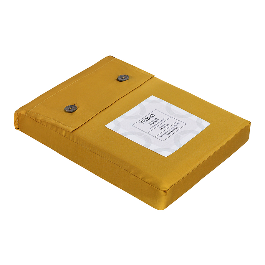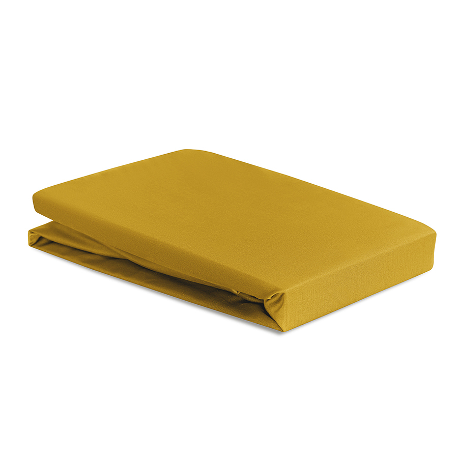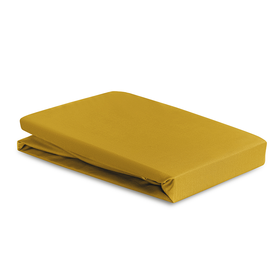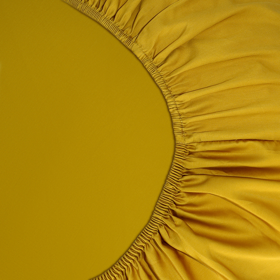 Простыня на резинке из премиального сатина горчичного цвета из коллекции essential, 160х200х30 см