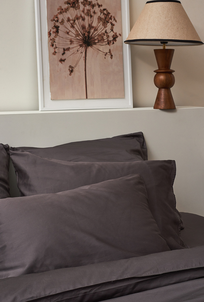 Комплект постельного белья из премиального сатина темно-серого цвета из коллекции essential, 150х200 см