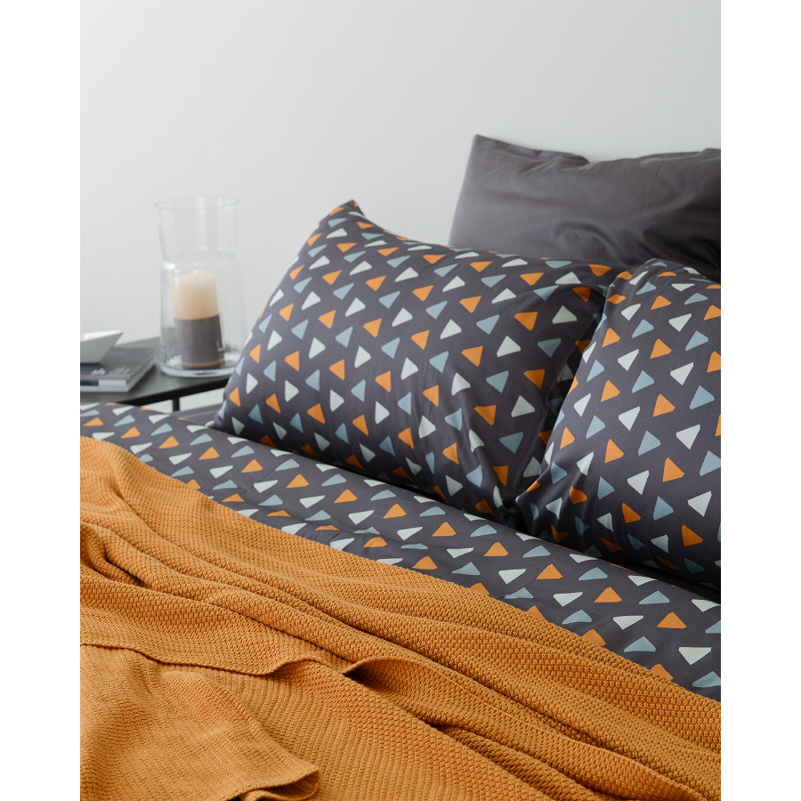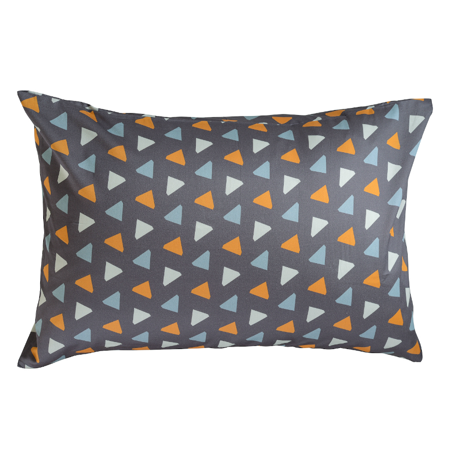 Комплект из двух наволочек с геометричным принтом Triangles в сочетании с насыщенным темно-серым цветом станет прекрасным дизайнерским акцентом в интерьере любой спальни. Гладкий, приятный на ощупь материал плотностью 210 ТС отличается особым способом пряжи – нити переплетаются в скрученном виде, что придает ткани дополнительную прочность. В комплекте 2 наволочки 50х70 см с системой закрытия клапан. Упаковка – брендированная крафтовая коробка. ! Максимальная температура стирки 60° C ! Гладить при максимальной температуре 150° C ! Сушить горизонтально ! Не отбеливать ! Возможна сухая чистка