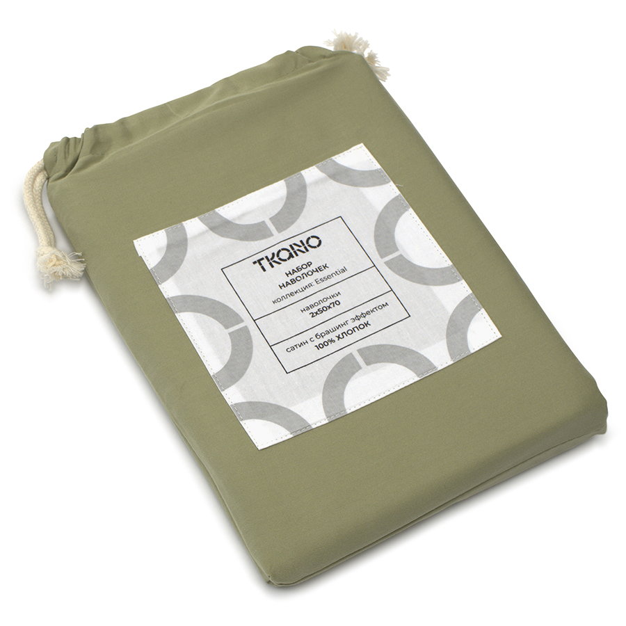 Набор из двух наволочек из сатина цвета шалфея с брашинг-эффектом из коллекции essential, 50х70 см - купить по цене 2 690 руб в интернет-магазине StoreForHome.ru