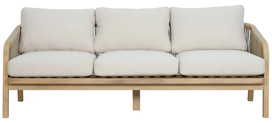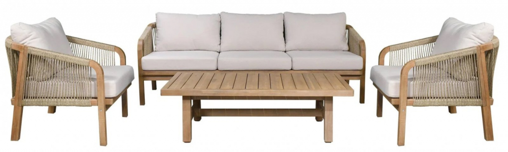 Ravona - это современная садовая коллекция из АКАЦИИ, выполненная в комбинации натурального веревочного плетения роуп, акации и бежевых подушек. Цвет натуральной твердой древесины представляет собой натуральный цвет с мелкой текстурой, придающий древесине приятный теплый вид. Ravona - это стиль и элегантность на Вашей веранде. Особенности: Материал - АКАЦИЯ, отделка экомаслом тик Light #01A. Веревочное плетение роуп 6 мм толщиной на спинке и подлокотниках излучает стиль в сочетании с деревянными поверхностями. Древесина, из которой изготовлена мебель, имеет сертификацию FSC (Forest Stewardship Council) - гарантия качества и происхождения древесины. Знак FSC - показатель того, что продукция происходит из леса, в котором ведется экологически и социально ответственное лесное хозяйство. Благодаря своей долговечности, прочности и устойчивости к вредителям эта древесина была создана для изготовления садовой мебели. Страна происхождения древесины: Вьетнам, Малайзия. Средняя плотность древесины: 550 кг/м3. Анодированная фурнитура из нержавеющей стали. Подушки в комплекте, ткань подушек - олефин, наполнитель - толстый поролон. Материалы устойчивы к УФ-излучению и другим погодным воздействиям. Цвет подушек - бежевый. Инструкция по уходу.
