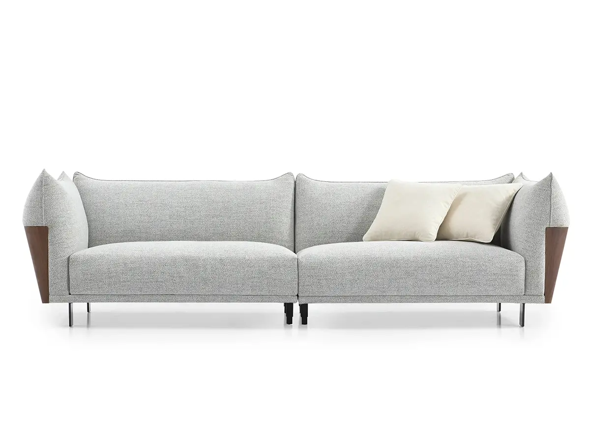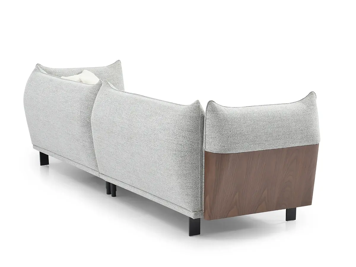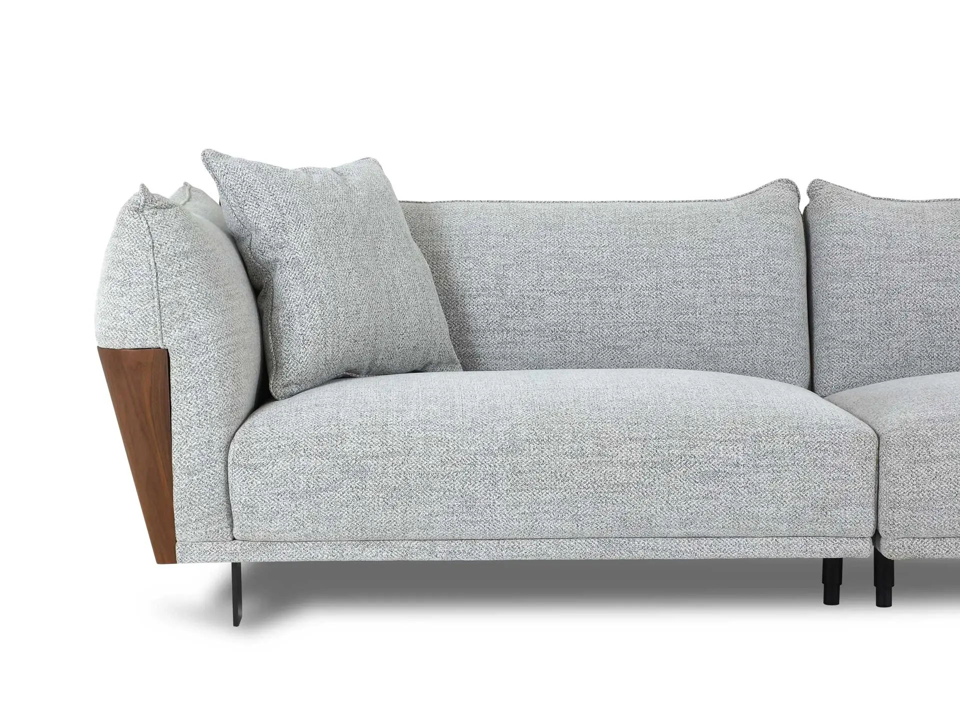 Материал обивки - рогожка, материал ножек - металл, материал подлокотников - МДФ в шпоне. Наполнитель подушек и сиденья - пух/перо. Лицевой чехол декоративных подушек - съемный, на молнии.