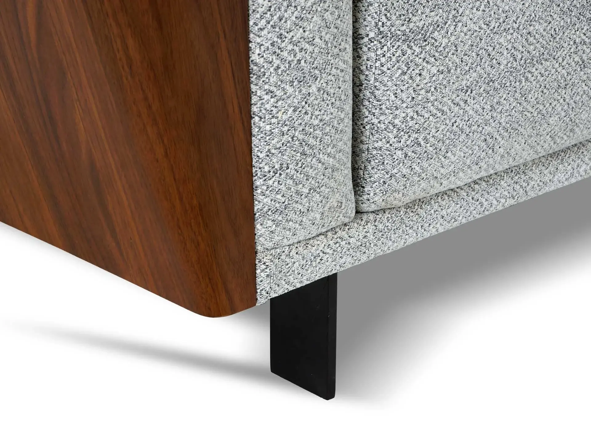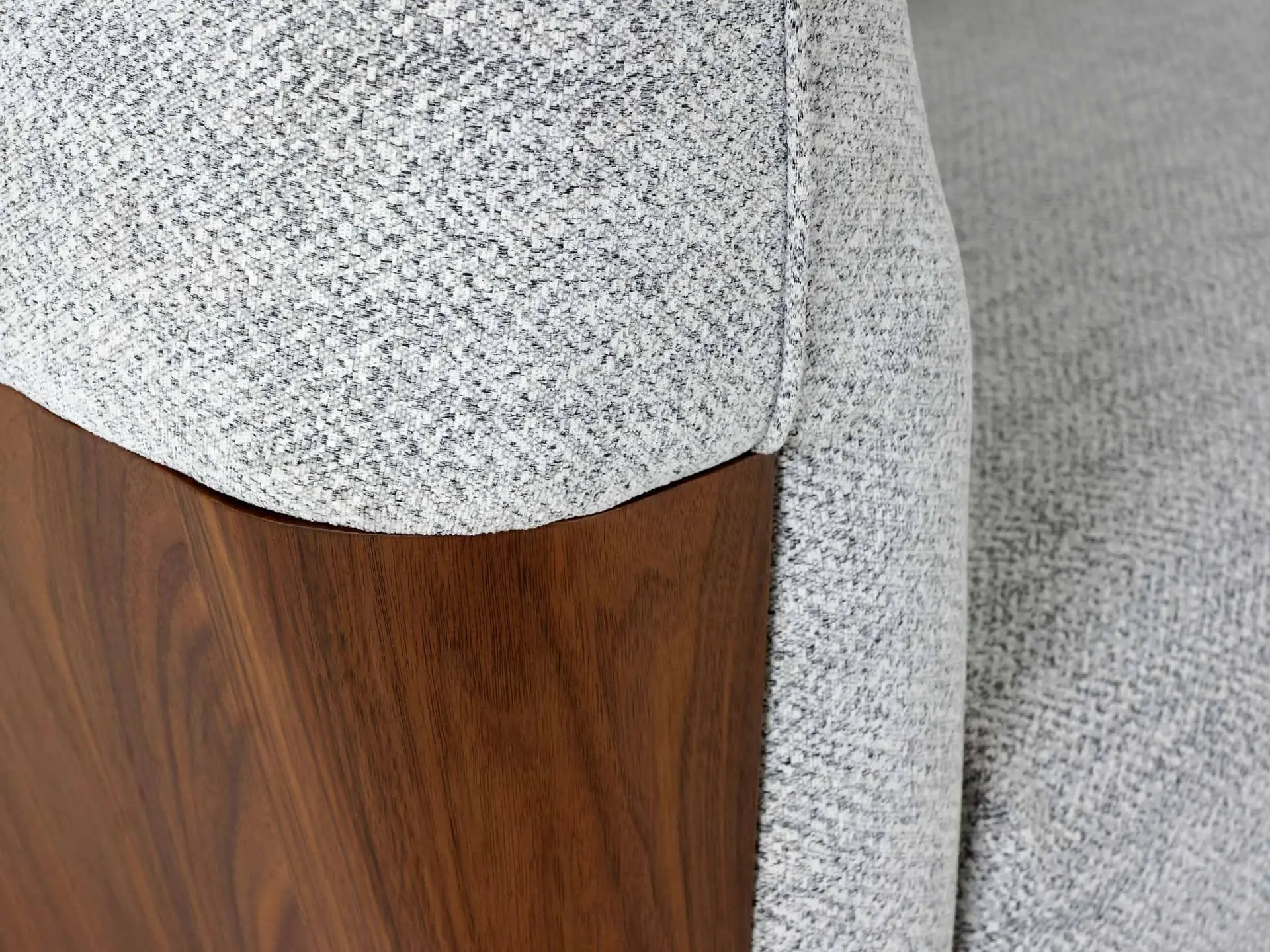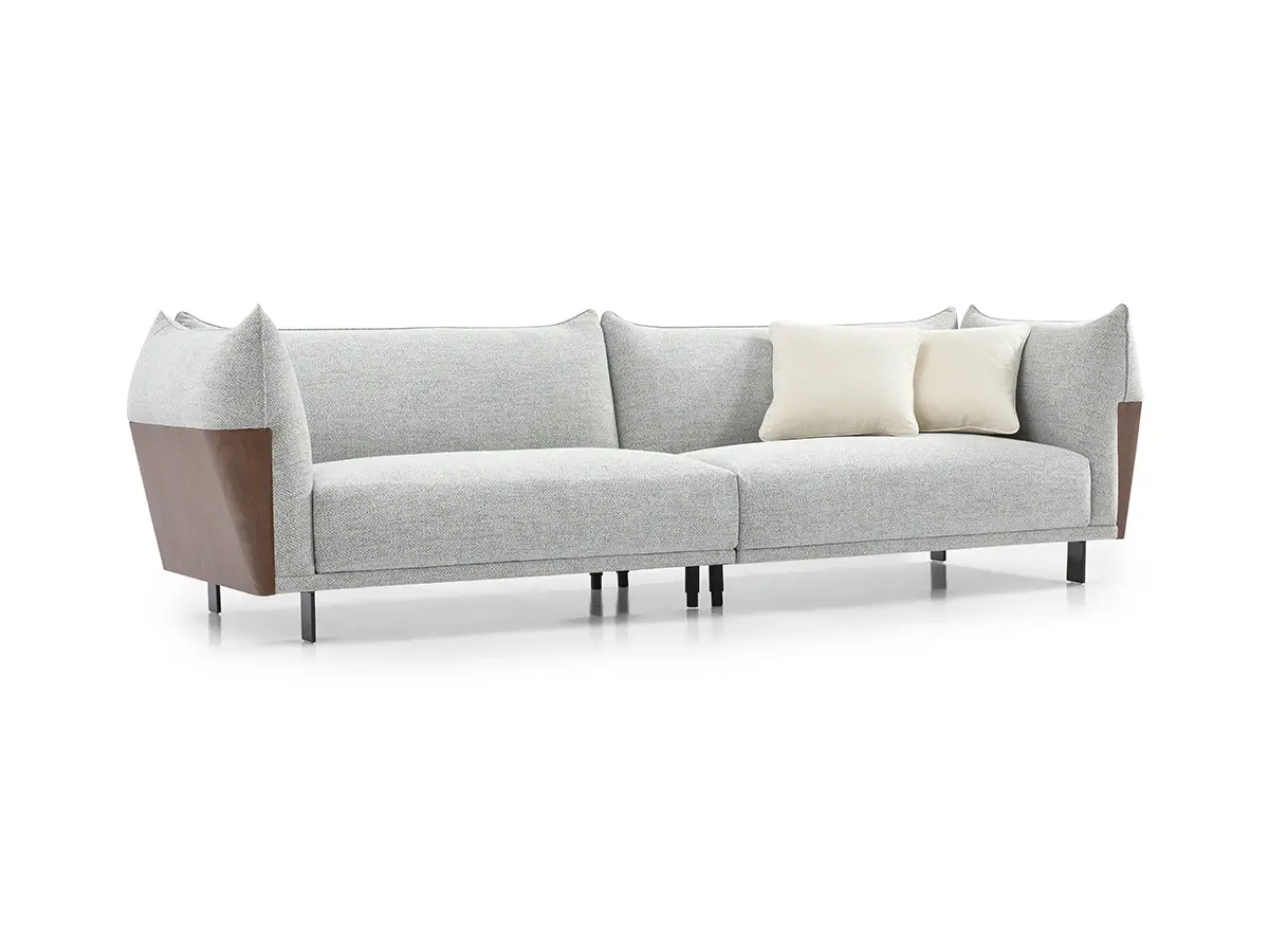 Материал обивки - рогожка, материал ножек - металл, материал подлокотников - МДФ в шпоне. Наполнитель подушек и сиденья - пух/перо. Лицевой чехол декоративных подушек - съемный, на молнии.