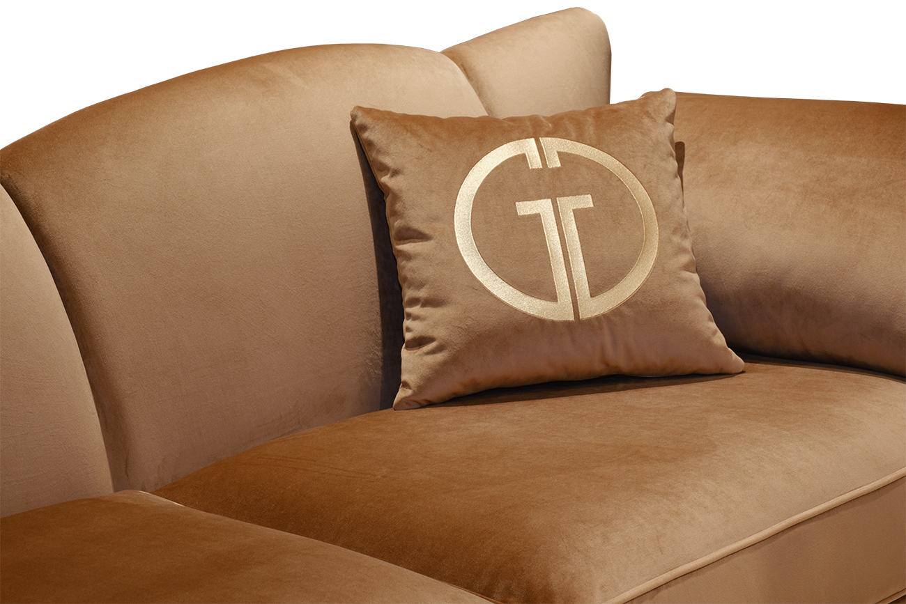 Роскошный трехместный диван SIENA – идеальное сочетание безупречного качества, элегантной эстетики и функциональности. Легко и непринужденно вписывается в стилистику арт-деко, шебби-шик, неоклассика. Стильный велюровый диван легко найдет себе место в гостиной, студии, кабинете, холле. Для повышенного комфорта и поддержки спины предусмотрены спинка необычной формы, мягкие подлокотники и диванные подушки с красивой золотой вышивкой. Ножки с отделкой цвета золото подчеркивают роскошную эстетику золотого дивана. Диван трехместный без механизма трансформации Siena в стандартном варианте выполнен в ткани коллекции Garda Decor- Colton004, каркас и опоры - массив дерева, нижняя часть опор покрашена золотой краской. В стандатный комплект дивана входят 2 конусовидные подушки 66*30см у локтей, 2 декоративные прямоугольные подушки 40*40см с вышивкой эмблема GD- цвет золото. Габариты дивана: длина- 2280мм, глубина- 920мм, высота- 920мм Габариты сиденья дивана: высота-500мм, глубина-660мм