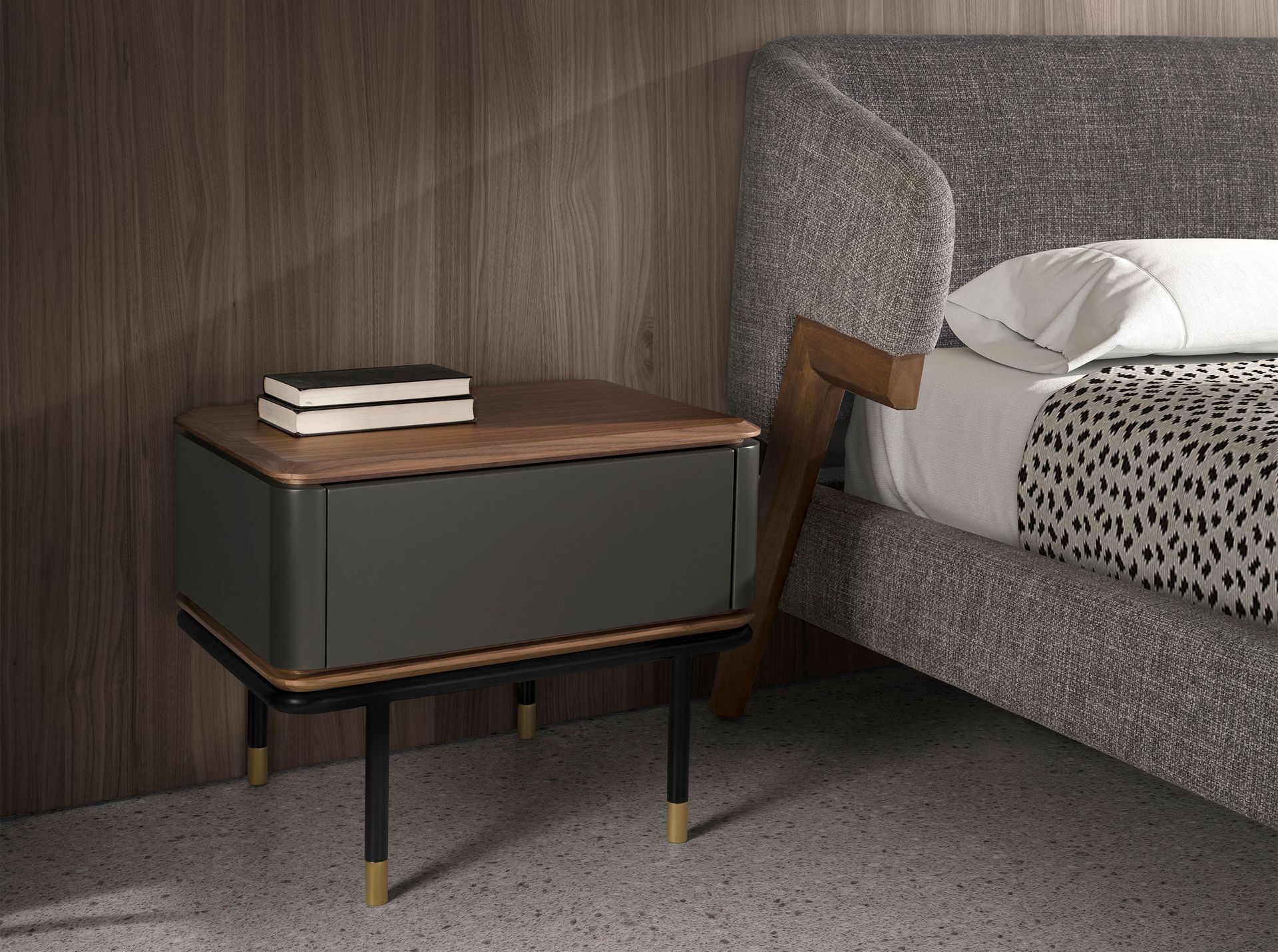 Прикроватная тумбочка 7170/CP2308H из темно-серого дерева с ореховым топом