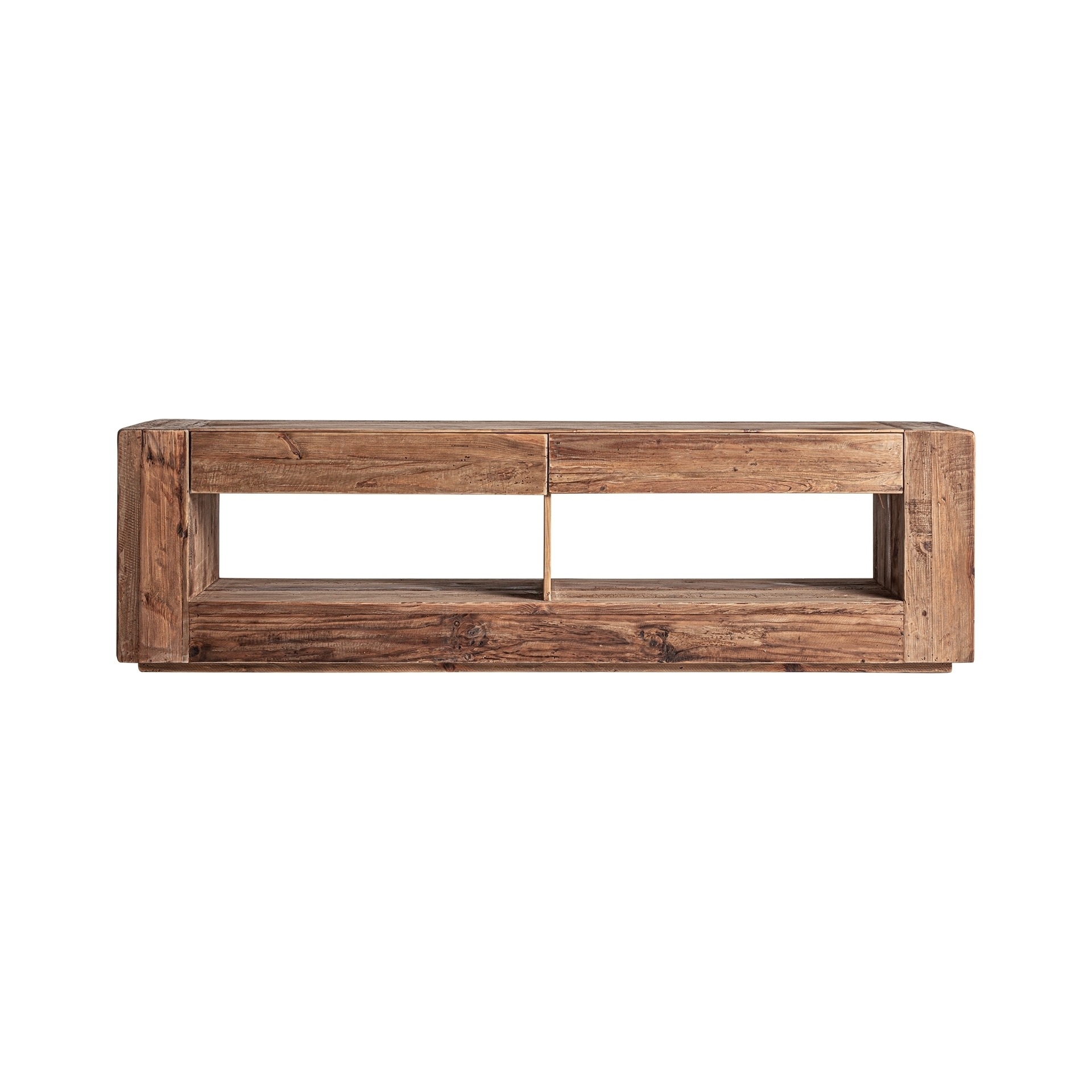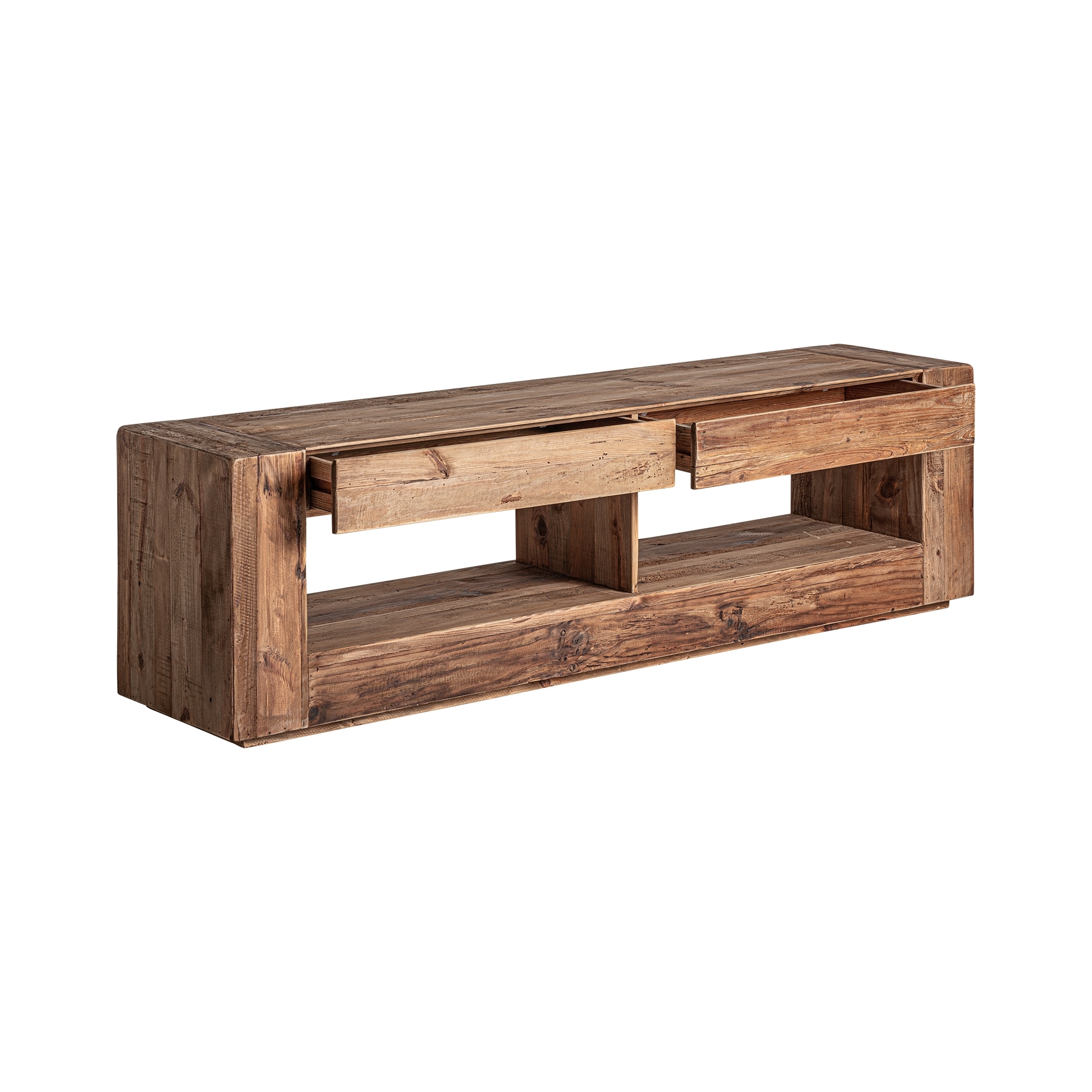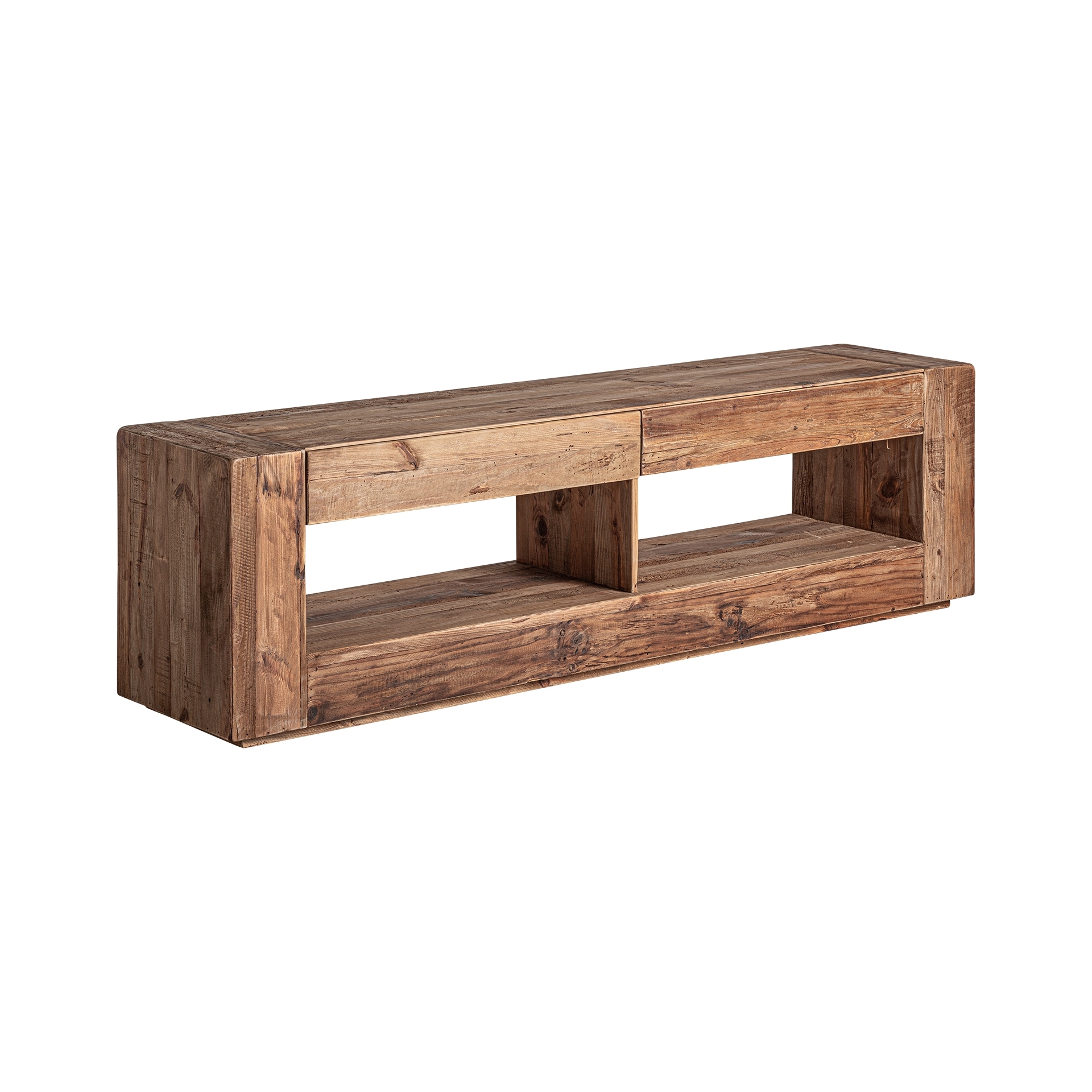 Тумба под телевизор Beive в деревенском стиле, изготовленная из натурального дерева с состаренной отделкой, подчеркивающей его структуру и фактуру. Низкий шкаф с дверцами и ящиками, идеально подходит для хранения вещей. Эта тумба под телевизор сочетает в себе функциональность и тепло, добавляя естественности и уюта любому пространству.
