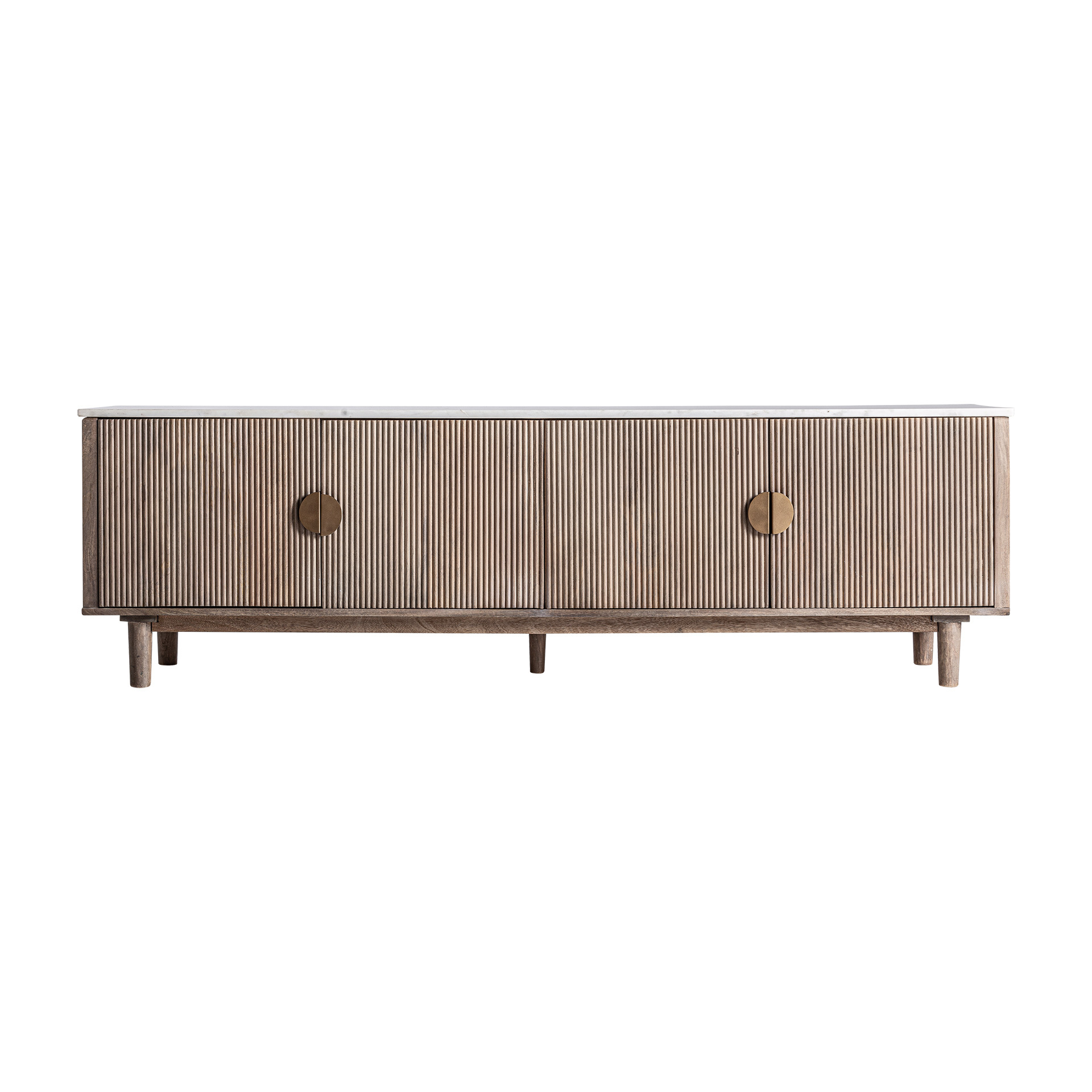 Подставка под телевизор Zerf от VICAL сочетает в себе теплоту мангового дерева и элегантность белого мрамора. Её линейный дизайн и каркас из МДФ обеспечивают визуальный баланс и функциональность. Эта модель преобразит гостиную, придав ей сдержанность и индивидуальность.