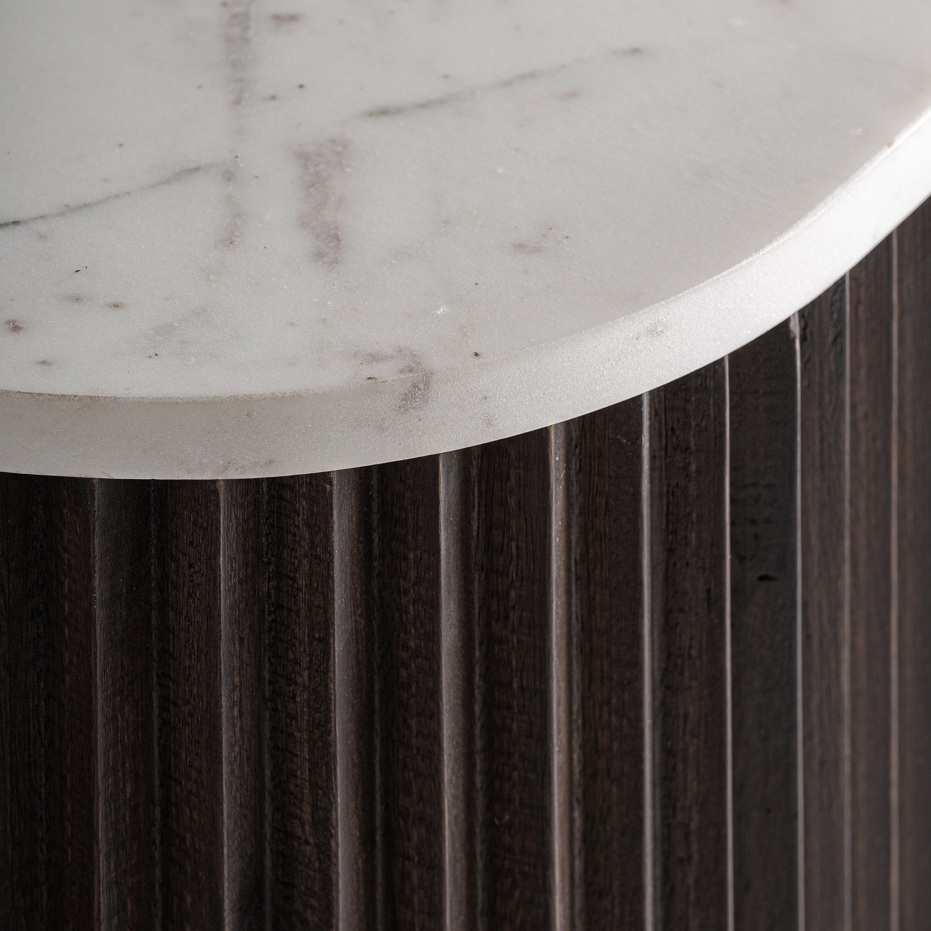 Тумба под телевизор Cenves, коричневого цвета, стиль арт-деко. Изготовлен из дерева манго в сочетании с мрамором.