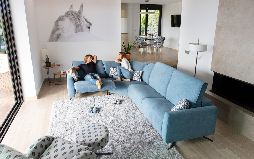 Baltia, один из наших новых модульных диванов-кресел. Baltia имеет обычную неразъемную спинку, которую можно поднимать и складывать с помощью умного многопозиционный механизм, который мы создали специально для этой конструкции. Наше оборудование предлагает множество технологических возможностей, которые позволили нам добавить несколько инноваций, которые сделали спинку сиденья более комфортной. Это мелкие детали, которые нельзя увидеть, но их можно оценить, когда вы сядете.