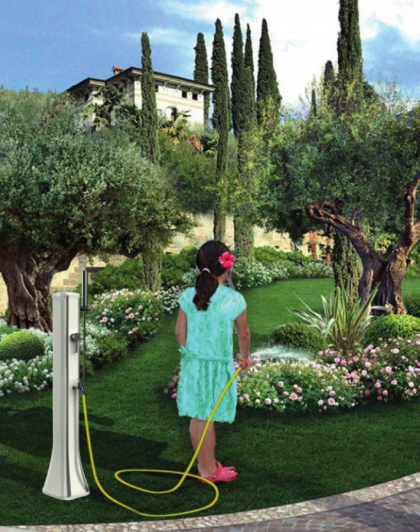 Солнечный душ Happy Go HG180подходитдля установки на открытом воздухе в гостиницах, кемпингах, туристическихили пляжныхкурортах,илидля частного использования. Душ оснащен гибким шлангом и краном для мытья ног,благодаря которым удобство в использовании возрастает в несколько раз. Особенности: колонна выполнена изполиэтилена высокой плотности (ПНД), который обладает устойчивостью к ультрафиолетовым лучам, коррозии, соли и известняку; смеситель горячей воды из бака и холодной воды из источника. Материал - нержавеющая сталь; гибкий шланг; кран для мытья ног, который также можно использовать как кран для садового шланга; емкость для воды на 19л; нагрев воды от солнечных лучей; винты для крепления в комплекте; возможность крепления к песку или газону с помощью винта D125 и меламиновой плиты D180 (приобретаются отдельно); устойчивость к УФ, соли и накипи; простая установка не требует специальных навыков, простое подключение к любому садовому шлангу или постоянному водоснабжению; размер входящей трубы для подключения воды 1,27 см; широкая палитра цветов. Скачать инструкцию по установке. Скачать техническую карту. Принцип работы максимально прост, что делает солнечный душ популярным атрибутом пляжныхкурортов. Вода, хранящаяся в корпусе душа, нагревается за счет солнца. Нагретая вода смешивается с холодной водой из источника постоянного водоснабжения (или из садового шланга). При помощи смесителя возможна регулировка потокагорячей и холодной воды до температуры комфорта. На зимний период воду из внутреннего бака и шлангов необходимо сливать!