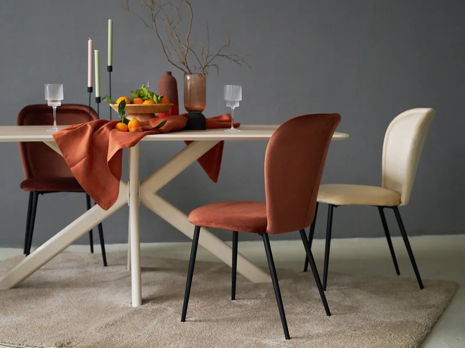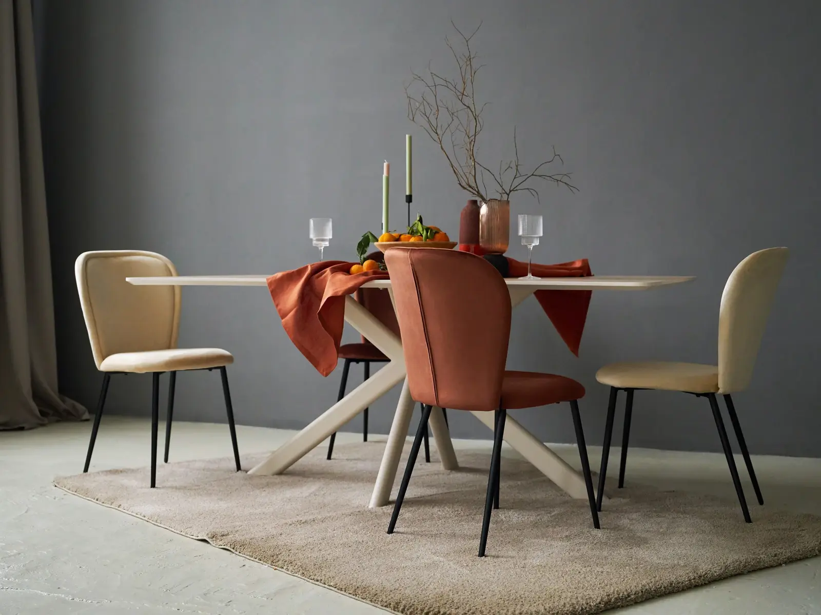 Материал обивки - велюр. Материал ножек - металл черного цвета. Наличие подпятников.