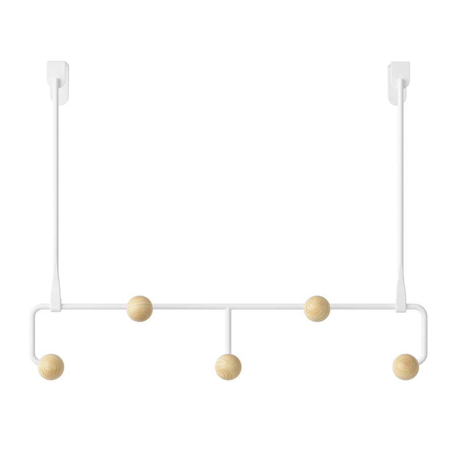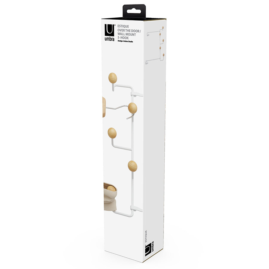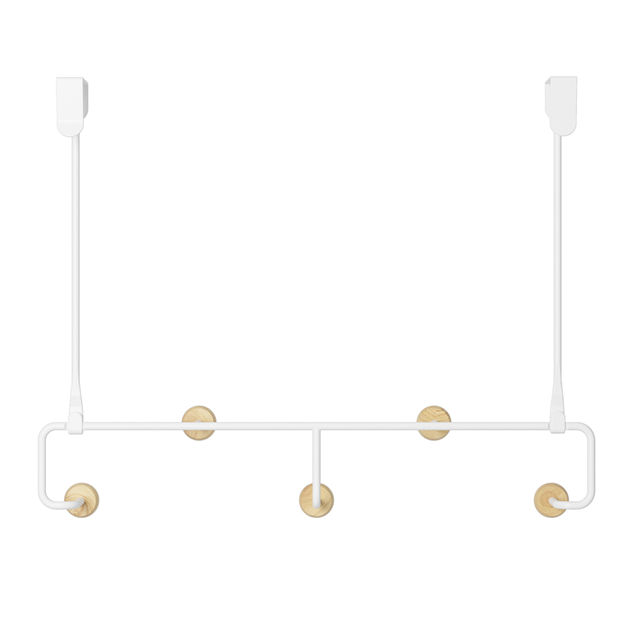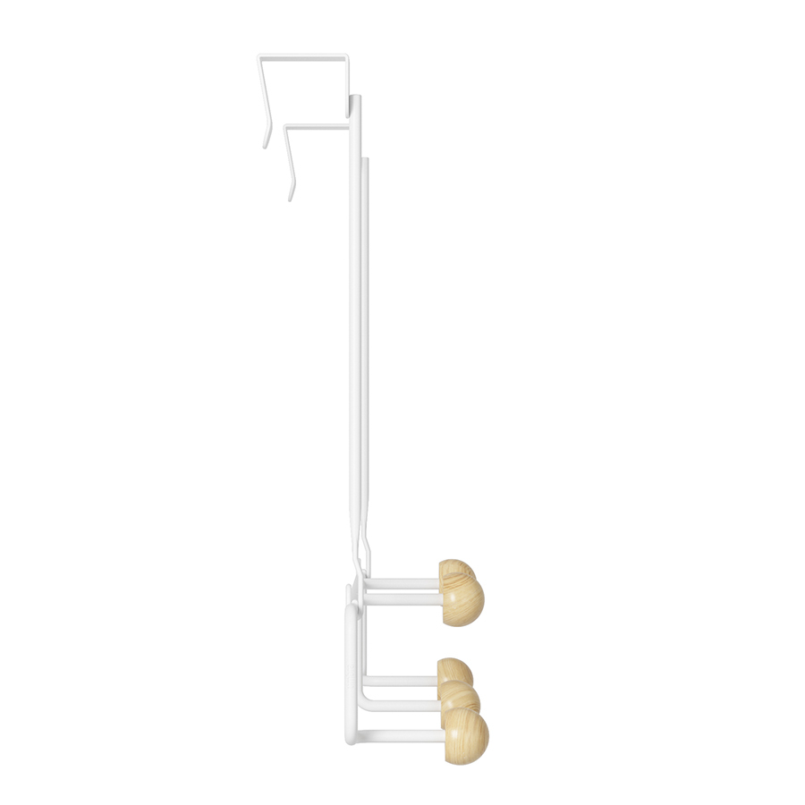 Вешалка подвесная Estique поможет создать дополнительное, легкодоступное пространство для хранения повседневных вещей в любой комнате. За счет специальной конструкции модель можно повесить на дверь или любую другую горизонтальную плоскость. Прочное, устойчивое к коррозии стальное основание обеспечивает изделию надежность и долговечность. Крючки из древесины бука округлой формы с гладкой поверхностью исключают растягивание и случайное повреждение одежды, выдерживают нагрузку до 2,3 кг каждый. Сочетание дерева и металла органично вписывается в различные варианты оформления интерьера. Материалы: сталь, бук. Размеры: 39х10х30 см. Вес: 330 г. Максимальная нагрузка: 2,3 кг. Цвет: белый/натуральное дерево. Пыль и загрязнения с поверхностей можно удалять при помощи мягкого влажного материала. После очищения вешалку рекомендуется протереть сухой салфеткой.