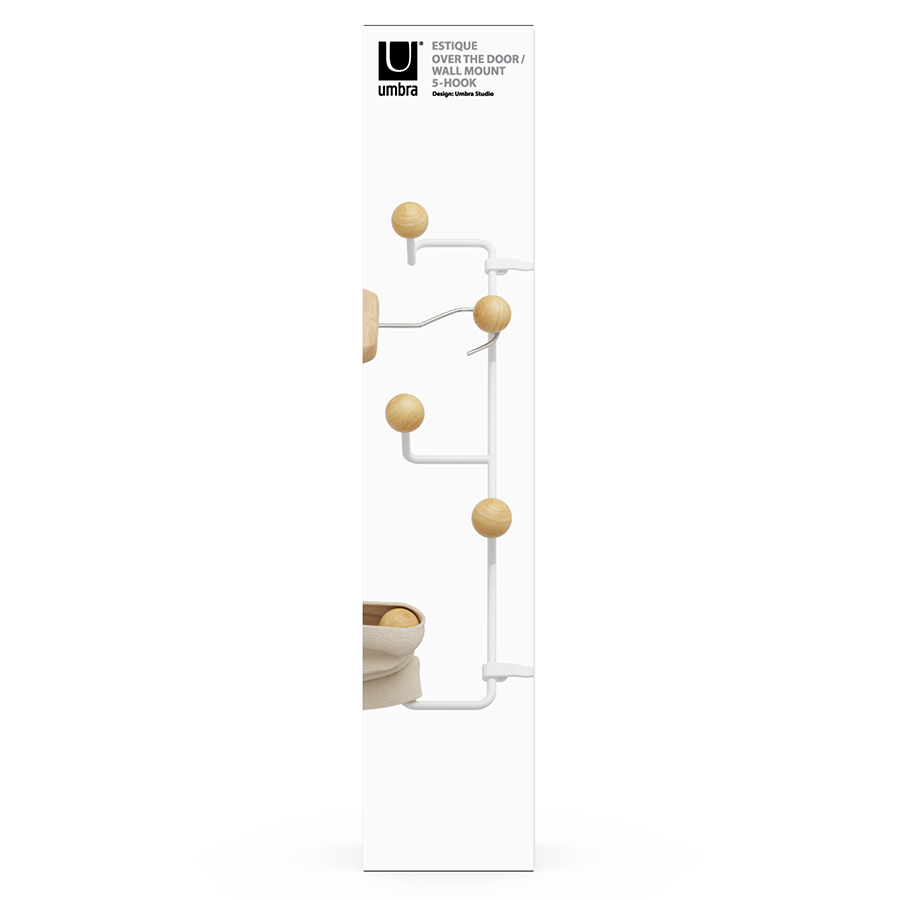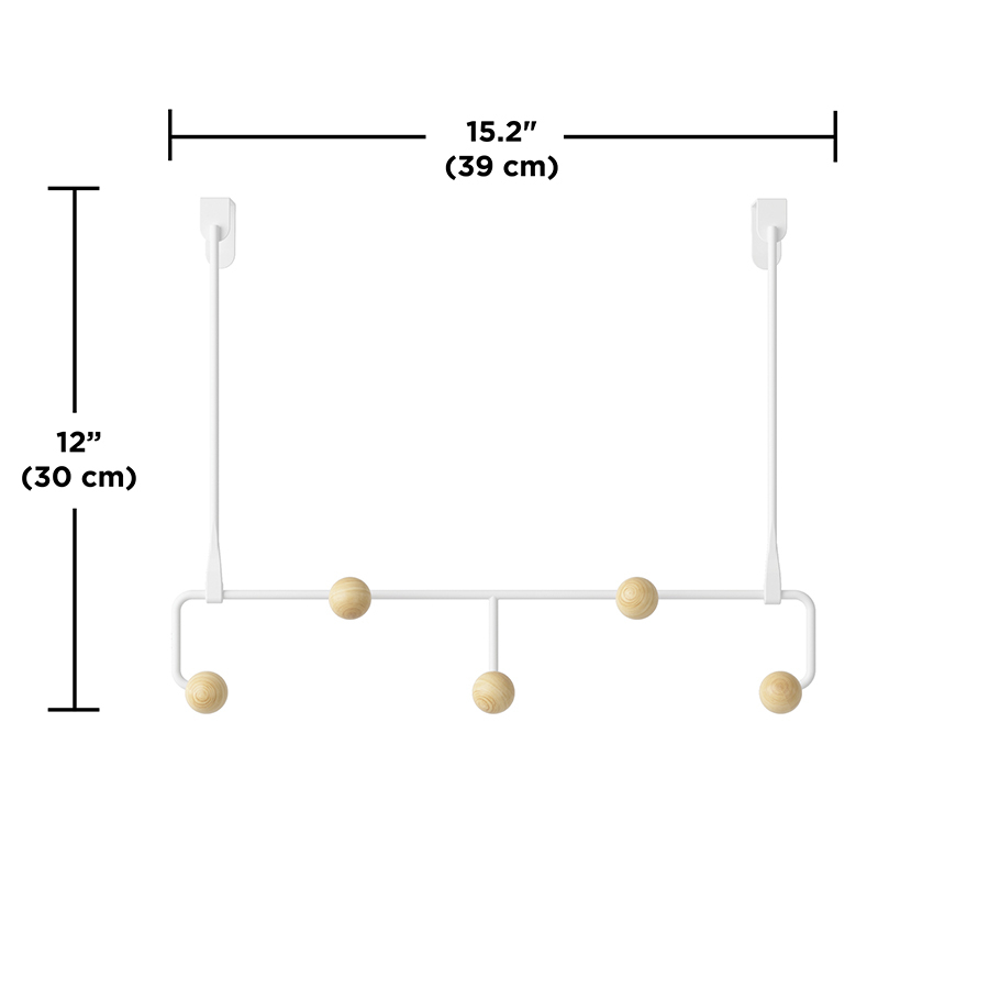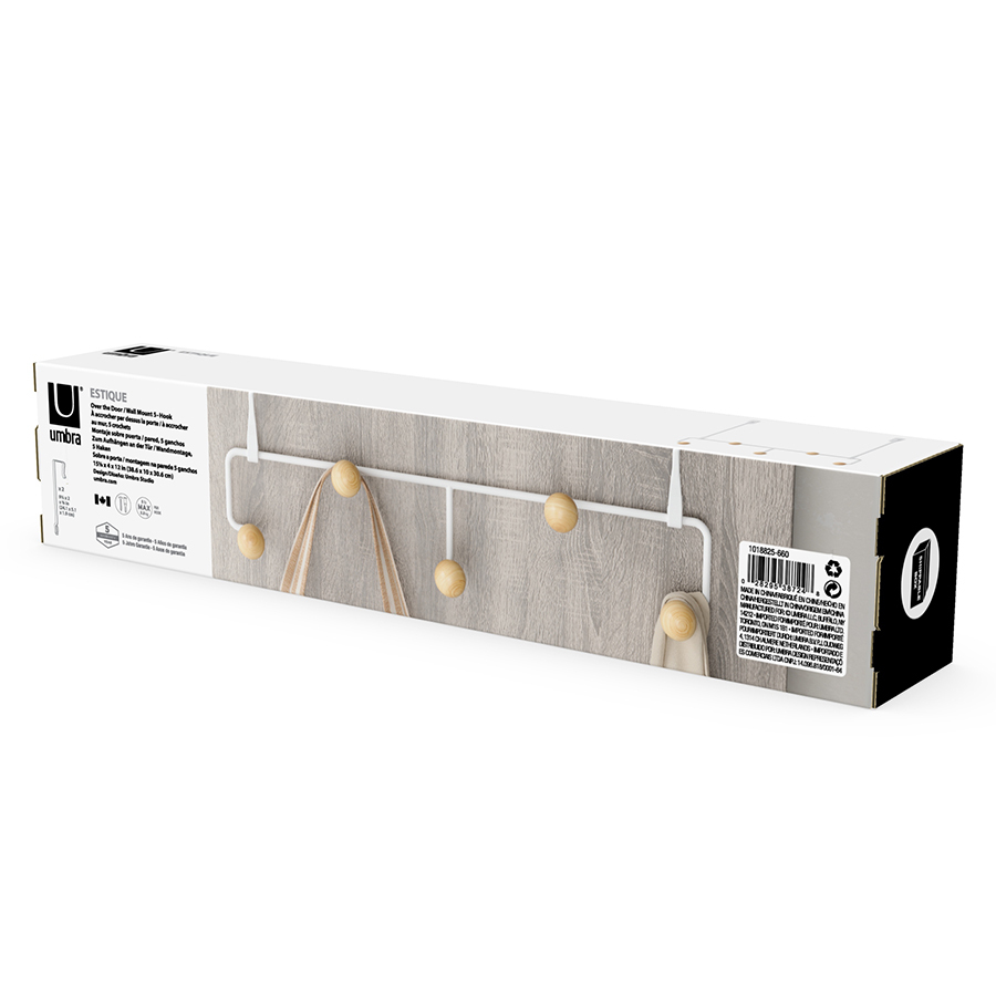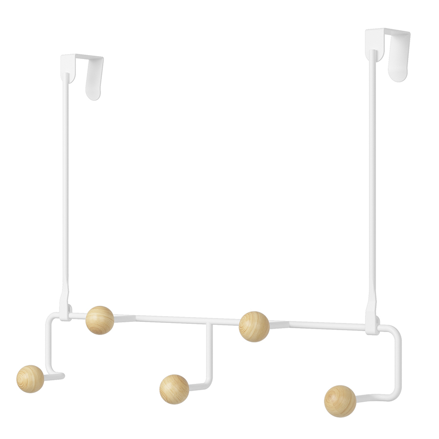 Вешалка подвесная Estique поможет создать дополнительное, легкодоступное пространство для хранения повседневных вещей в любой комнате. За счет специальной конструкции модель можно повесить на дверь или любую другую горизонтальную плоскость. Прочное, устойчивое к коррозии стальное основание обеспечивает изделию надежность и долговечность. Крючки из древесины бука округлой формы с гладкой поверхностью исключают растягивание и случайное повреждение одежды, выдерживают нагрузку до 2,3 кг каждый. Сочетание дерева и металла органично вписывается в различные варианты оформления интерьера. Материалы: сталь, бук. Размеры: 39х10х30 см. Вес: 330 г. Максимальная нагрузка: 2,3 кг. Цвет: белый/натуральное дерево. Пыль и загрязнения с поверхностей можно удалять при помощи мягкого влажного материала. После очищения вешалку рекомендуется протереть сухой салфеткой.