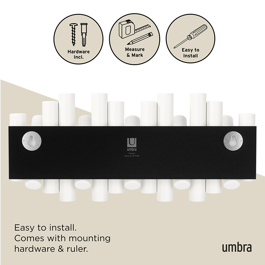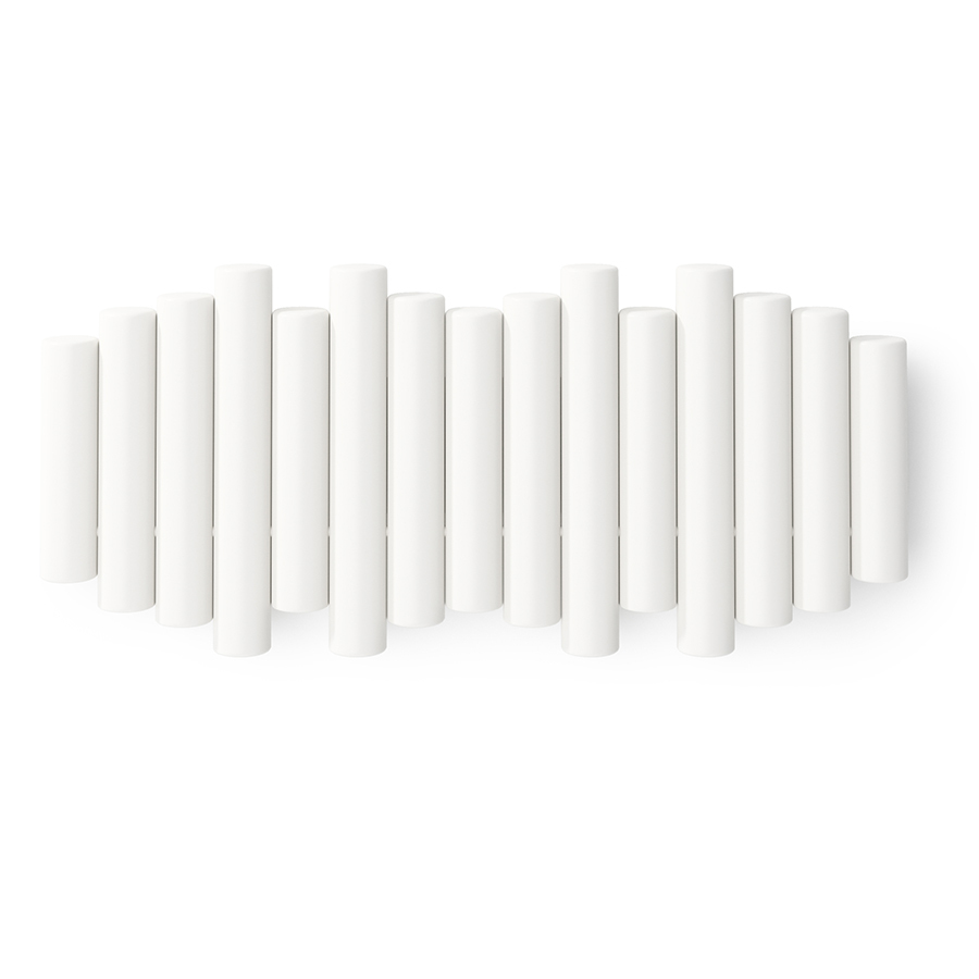 Настенная вешалка Picket превращает функциональность в искусство и идеально подходит для всех, кто ценит красоту в каждой детали. Такой аксессуар не только поможет сделать пространство более организованным, но и станет его стильным акцентом. Вешалка состоит из сосновых колышков разных размеров и оснащена пятью откидными крючками, каждый из которых выдерживать вес до 2,3 кг. Если крючки не используются, их можно легко убрать, превратив функциональный элемент в арт-объект. В комплект входит необходимый крепеж для быстрой и простой установки. Используйте вешалку Picket от Umbra в прихожей для пальто и сумок, в спальне для аксессуаров или в гостиной для декоративных элементов – она прекрасно смотрится в любом интерьере. Материал: сосна, этиленвинилацетат, сталь. Размеры: 40х5х18 см. Цвет: белый. Дизайн: Sung Wook Park. Пыль и загрязнения можно удалять при помощи мягкого влажного материала. Запрещается использование абразивов и агрессивной бытовой химии.