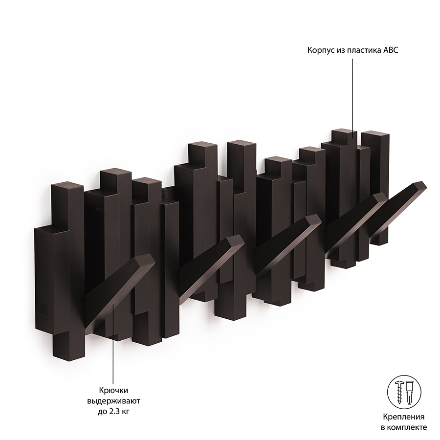 Вешалка настенная sticks, 49,3 см, эспрессо, 5 крючков - купить по цене 3 990 руб в интернет-магазине StoreForHome.ru