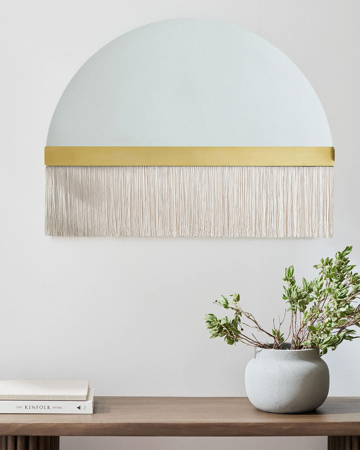 Полукруглое зеркало “Арья” с белыми нитями – это элегантное и стильное дополнение для любого интерьера. Оно имеет форму полукруга, что добавляет некоторую оригинальность и интерес к его дизайну. Прямоугольный акцент в цветовой гамме – латунь, создает контраст и дополняет его элегантность. Но главное преимущество этого зеркала заключается в его особой детали – белых шелковистых нитях, вдохновленные стилем «бохо-шик», они мягко спускаются по периметру латунного акцента. Эти детали добавляют зеркалу легкость, текстуру и неповторимый шарм, подчеркивая его уникальный дизайн и привносят в пространство естественное чувство стиля, теплоту и уют, гармонично вписываясь в любую обстановку. Идеально подходит для гостиных, спален, прихожих, добавляя интерьеру изысканности и индивидуальности.
