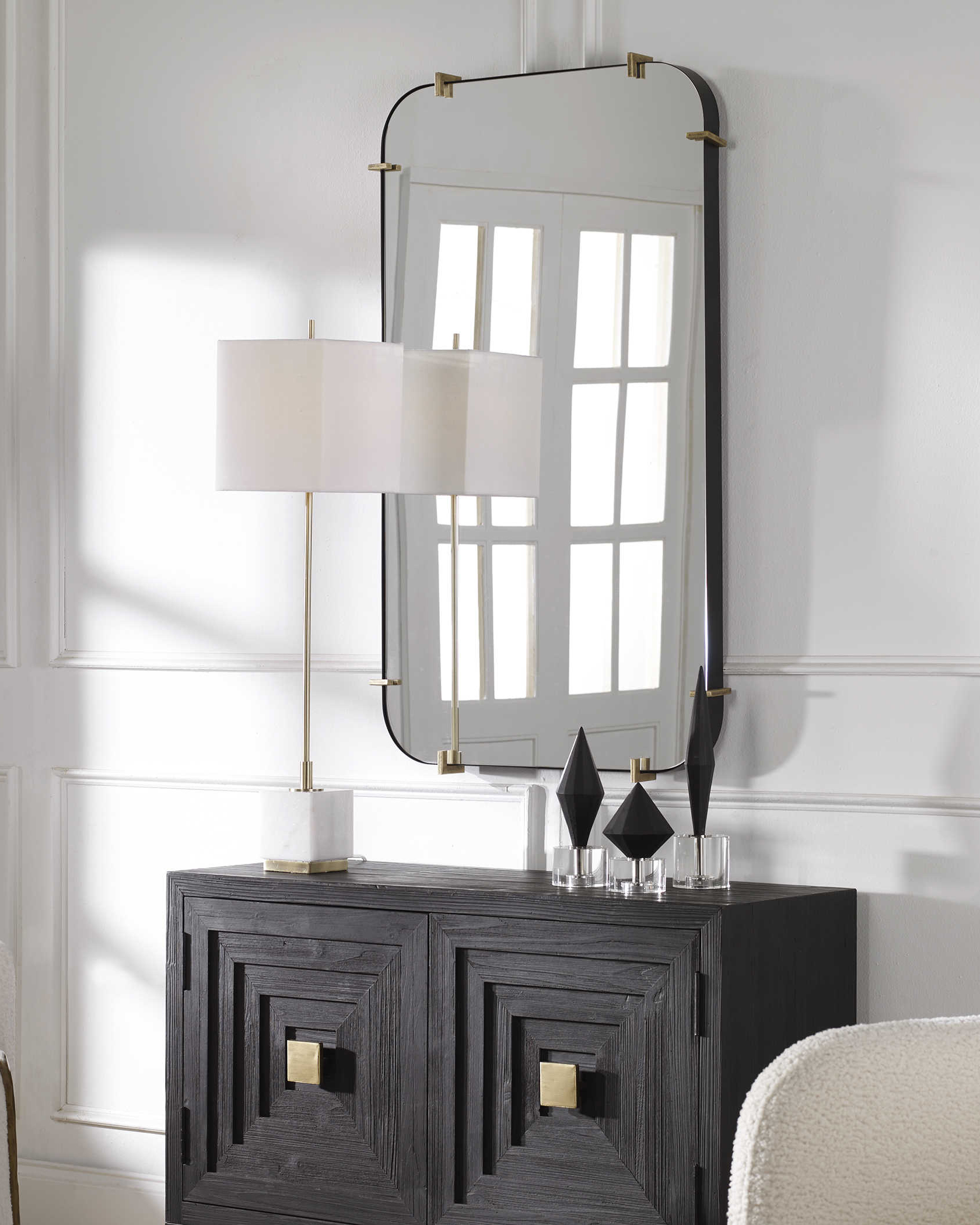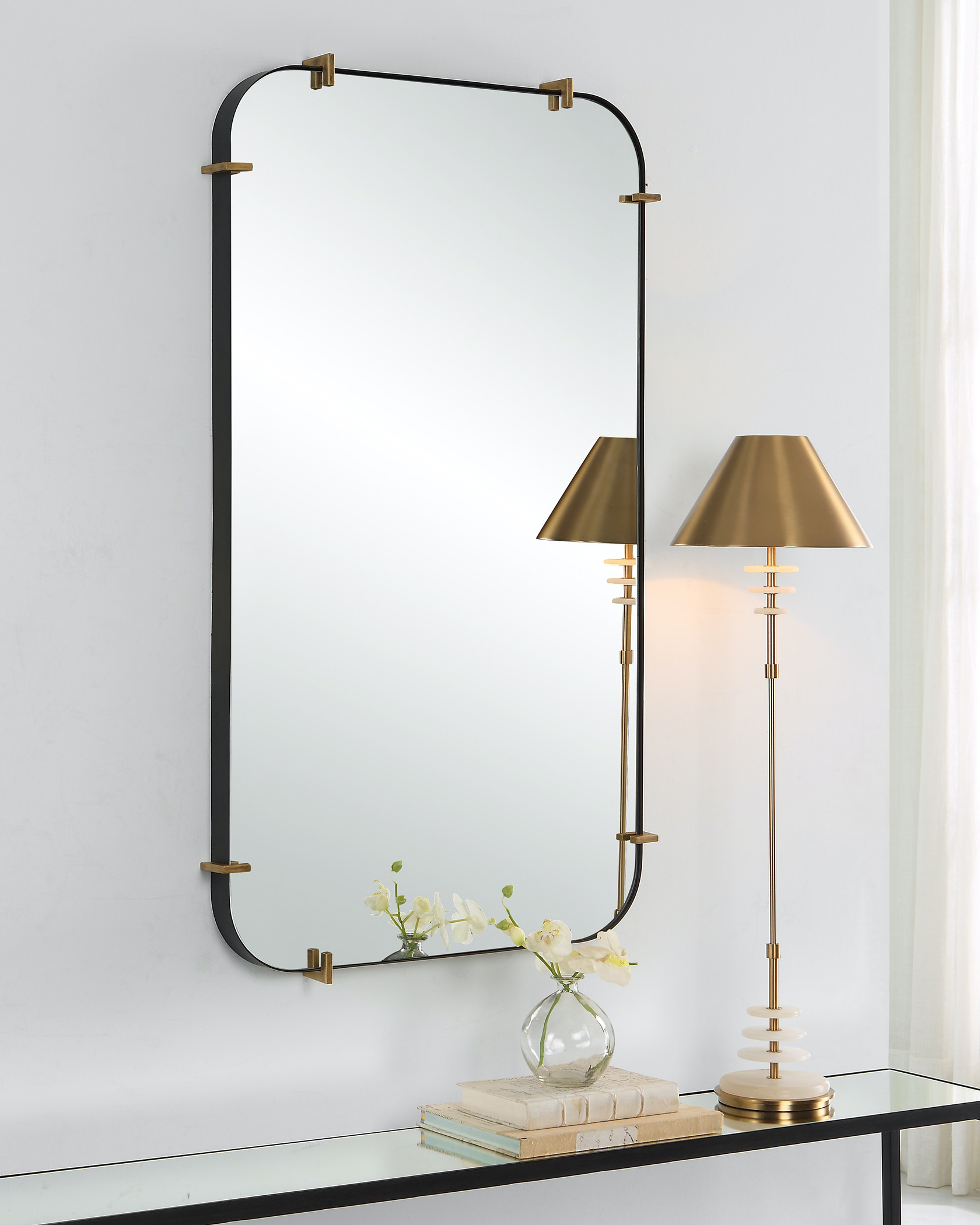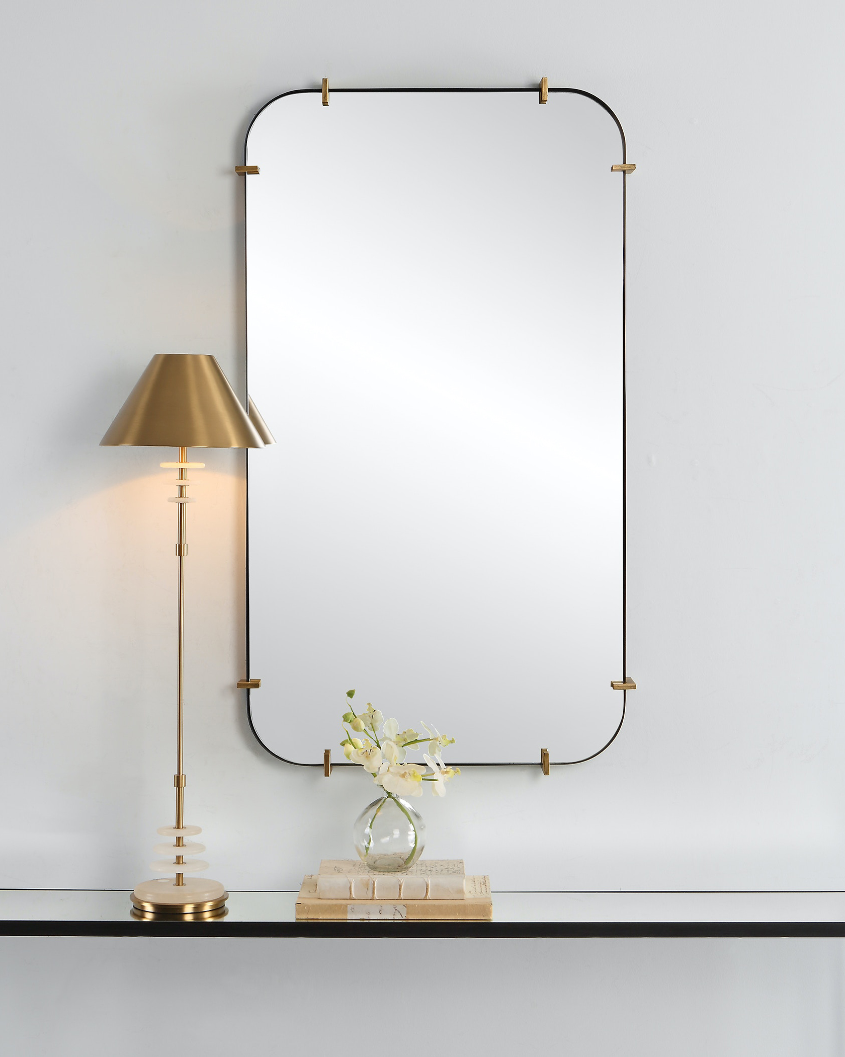 Внутренний размер: 117 см. х 65,5 см. Настенное зеркало в раме “Пали” – это идеальное решение для тех, кто ценит современный и индустриальный стиль в интерьере. Основным преимуществом зеркала “Пали” является его стильная рама из черного металла. Черный цвет придает зеркалу современность вид, рама зеркала украшена небольшими декоративными деталями в цвете латунь. Золотые элементы также слегка состарены, что придает зеркалу привлекательности и делает его еще более интересным. Оно может быть повешено как горизонтально, так и вертикально, что позволяет вам выбрать оптимальное положение в зависимости от ваших предпочтений и потребностей. Благодаря своим размерам, “Пали” будет отлично смотреться в любой комнате вашего дома – в прихожей, гостиной, спальне или даже в ванной комнате. Это зеркало не только будет служить вашему основному предназначению – отражать, но и создаст впечатление пространства и света в помещении. Настенное зеркало “Пали” поможет создать уютную и стильную атмосферу в вашем доме!